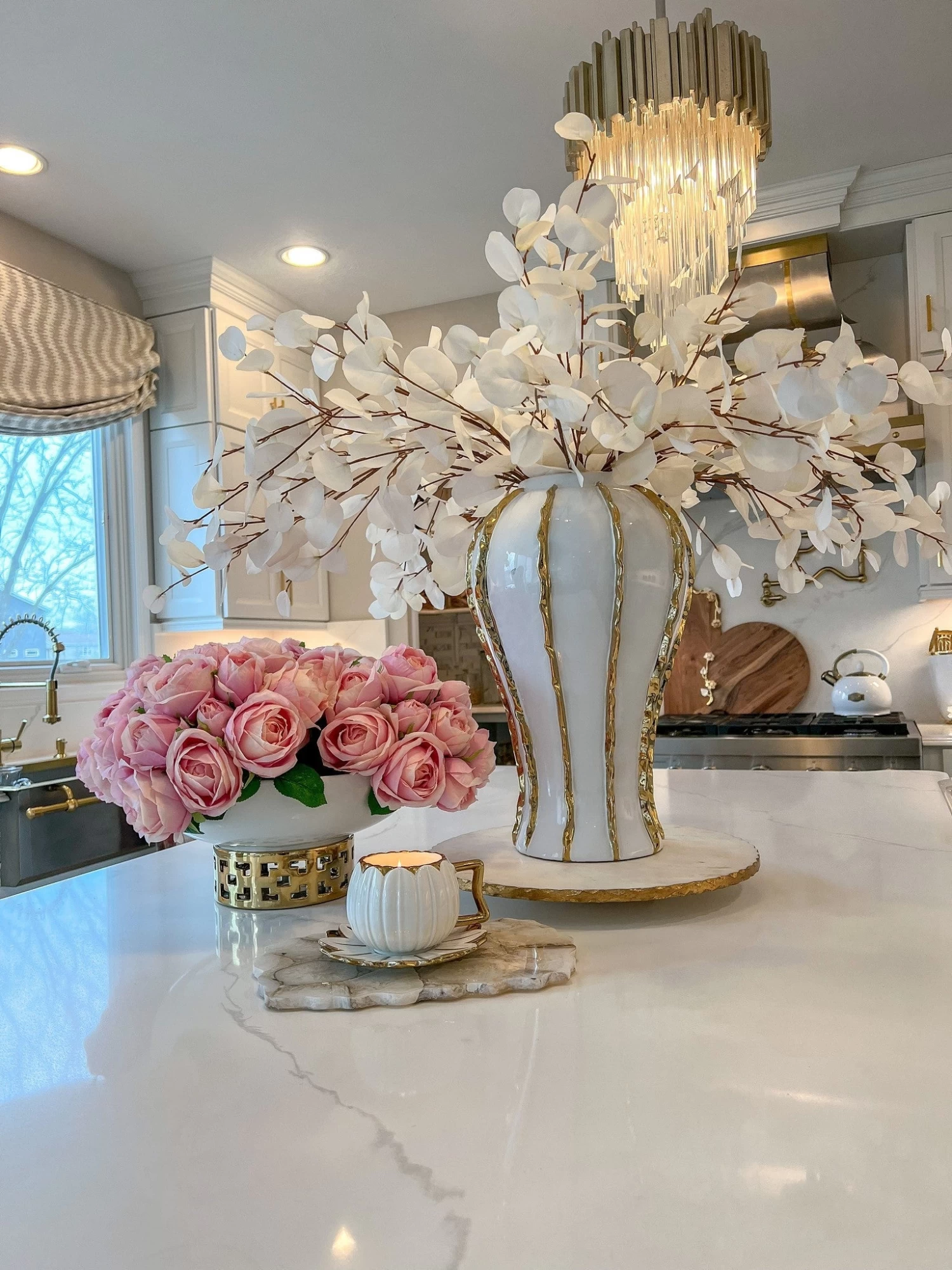 Description: This faux floral bouquet consists of large, luxurious pink roses and lush greenery, providing a vibrantly eye-catching display. Featuring realistic petal texture and long-lasting color, it’s a perfect springtime accent for any environment.