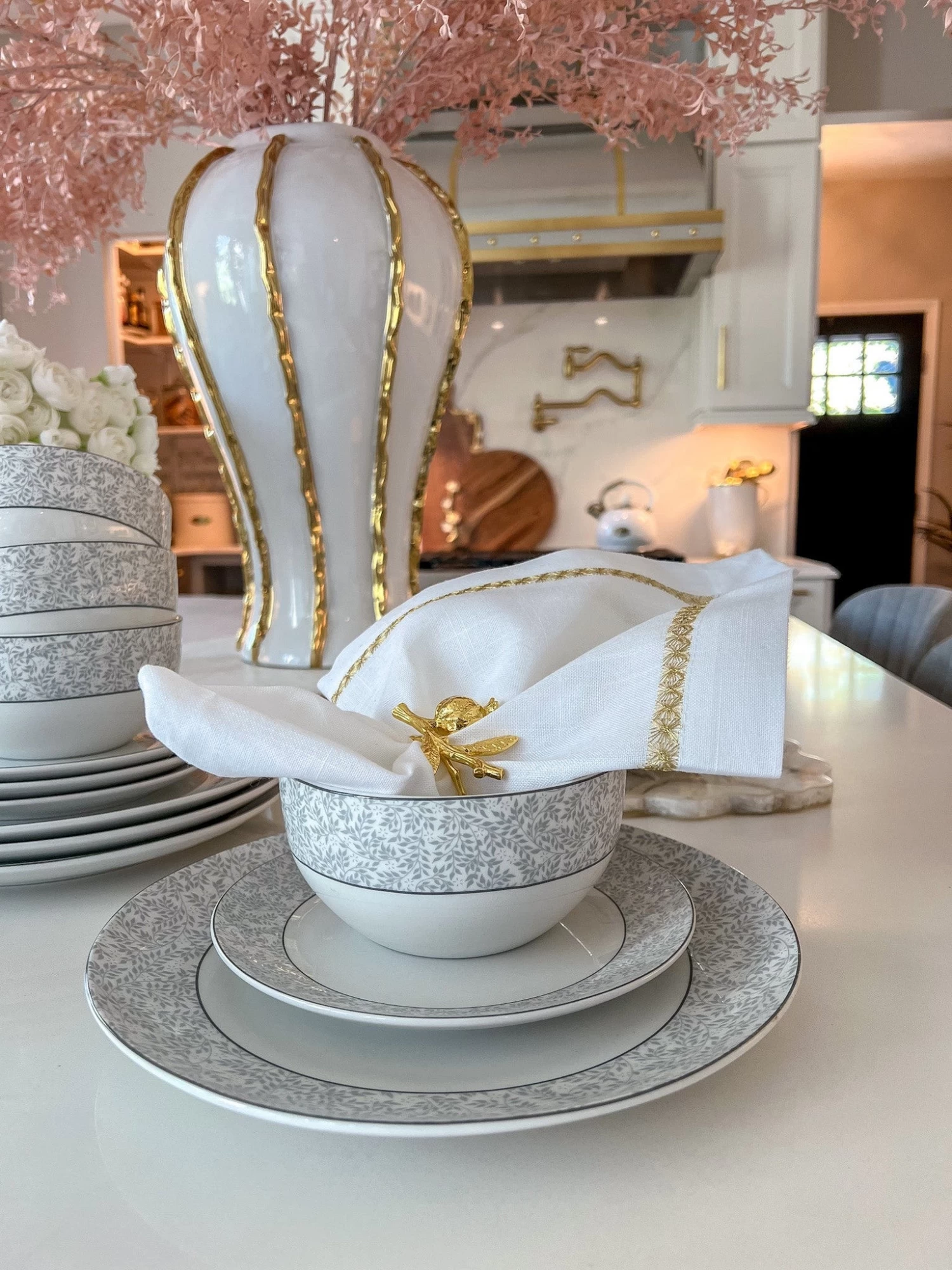 Description:ย This gorgeous glossy white & grey design dinner set features four dinner plates, four salad plates and four bowls. This is perfect for Holidays, a special dinner for two, family gatherings or just for everyday dining. This looks fits in perfectly with any decor!