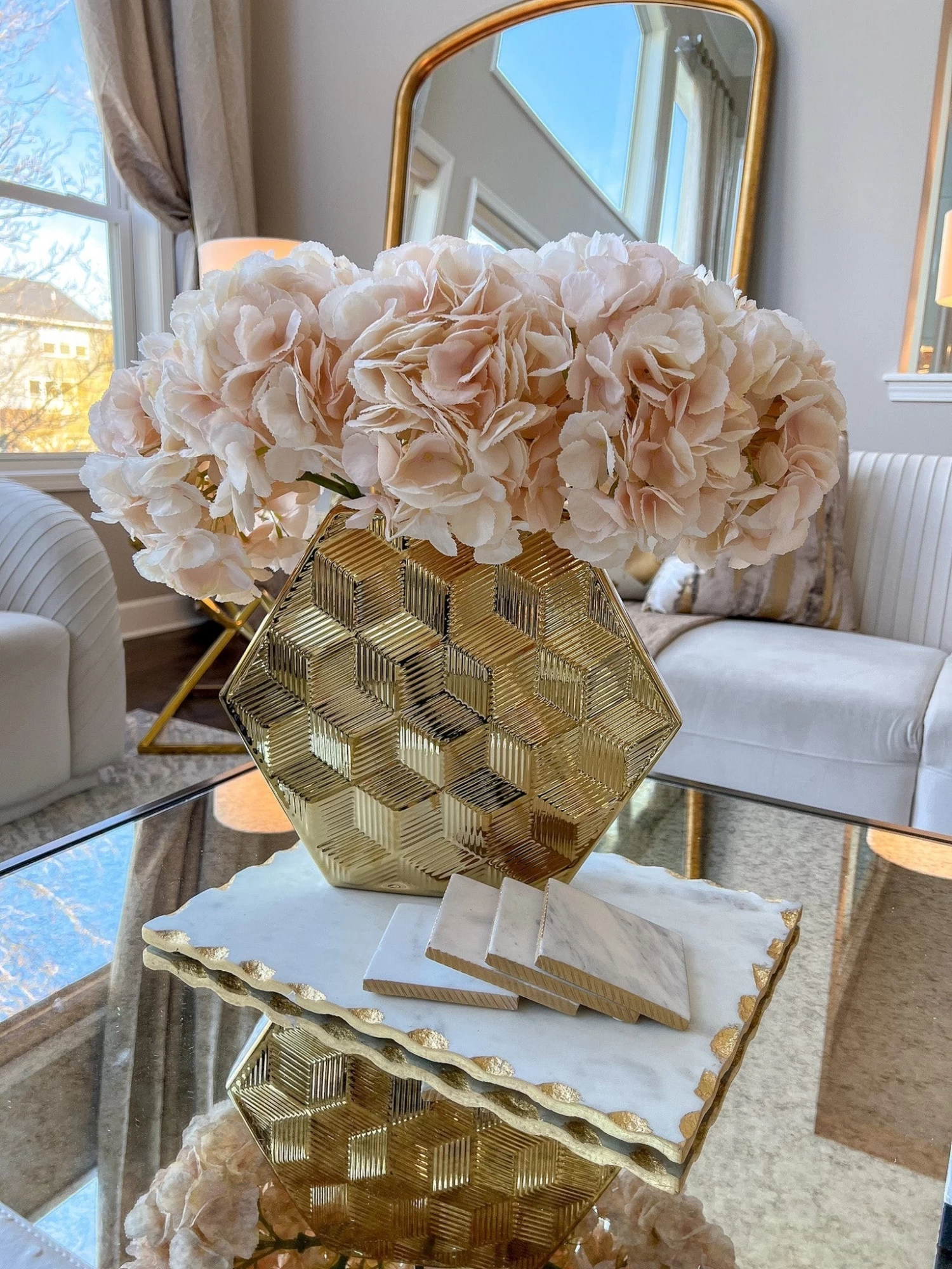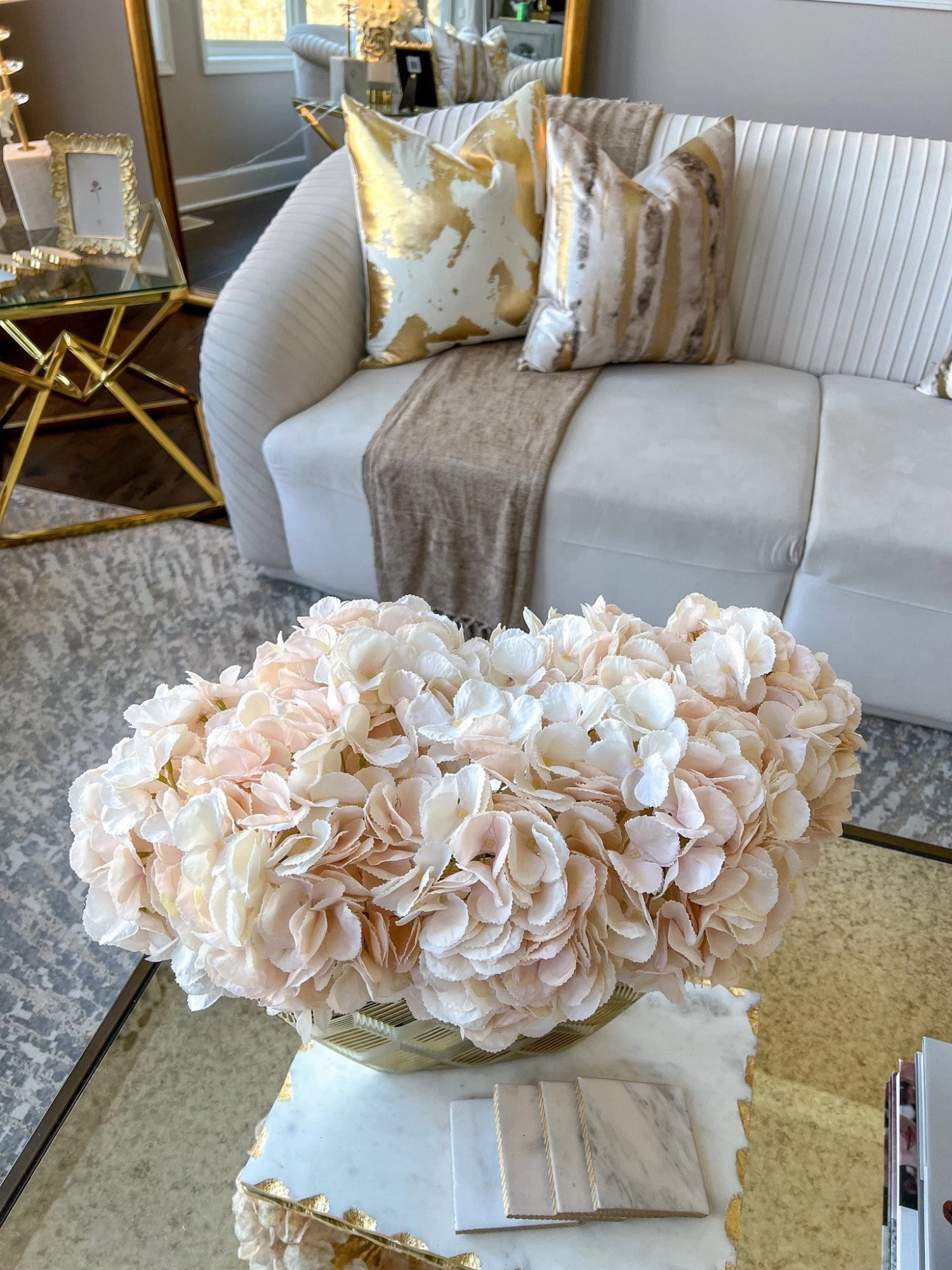 Description: This blush pink hydrangea stem is so beautiful and will look amazing styled in any IMDH vase or ginger jar!