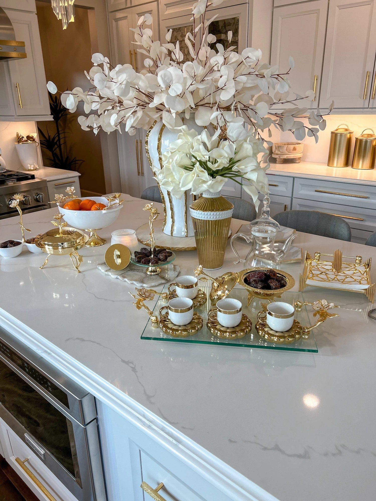Description: This two-section white porcelain snack bowl is a stunning piece for entertaining or for everyday use and features a gold and white floral design.