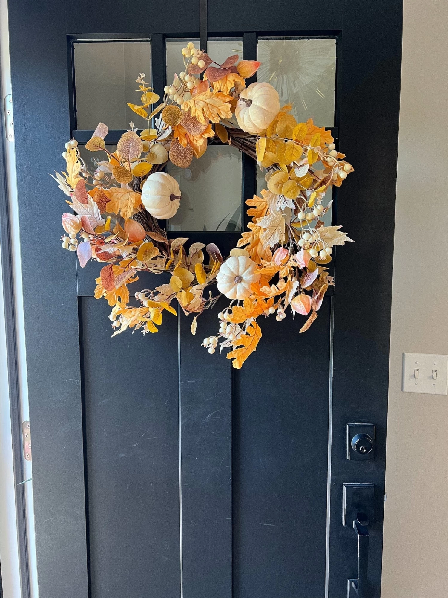 Description: This is the perfect wreath for your front door for fall and Halloween. The neutral hues will tie in perfectly with any decor!