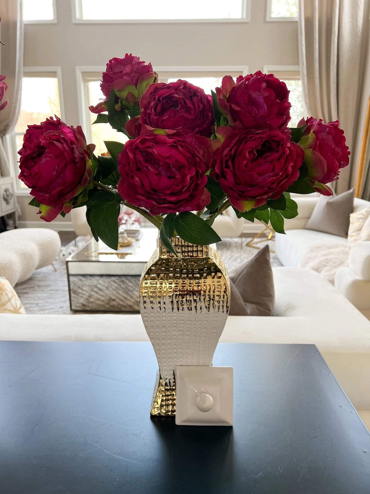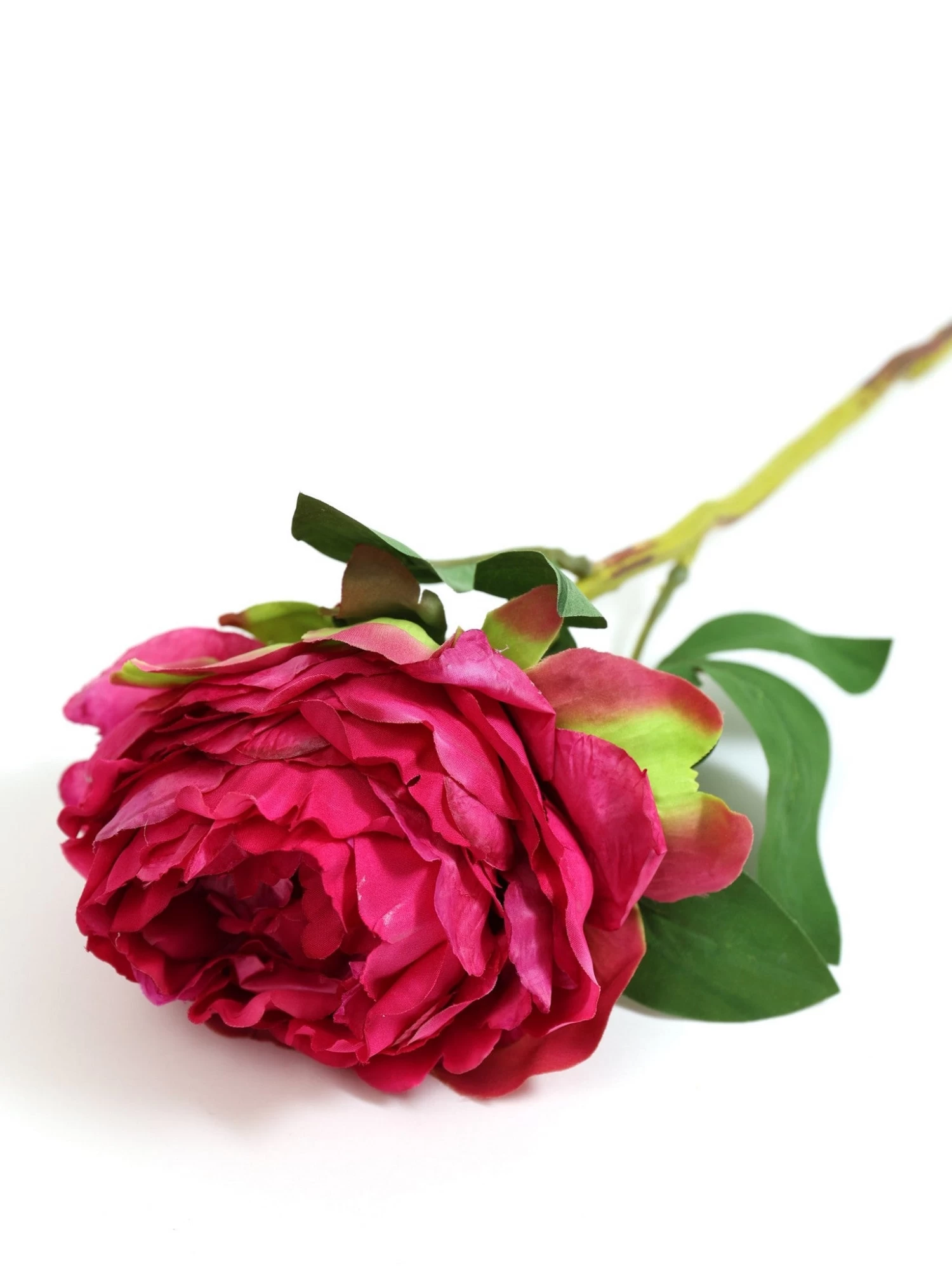 Description:Â This 27″ Peony Stem is perfect for sprucing up any room. Available in both bright fuchsia and white colors, these stems offer a bold and eye-catching look to any decor. Each stem is carefully crafted for a realistic look that will last.