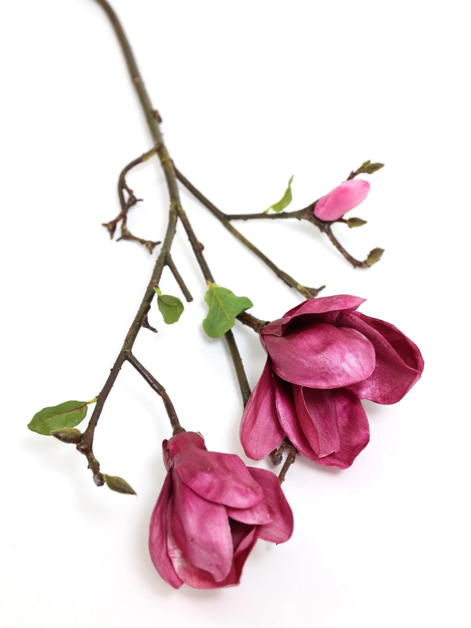 Description: Add a pop of color to your home décor with the 36″ Fuchsia Magnolia Stem. Featuring vibrant blossoms, this stunning piece captures the beauty of the season and brings joy to any space. Perfect for any floral arrangement or display.