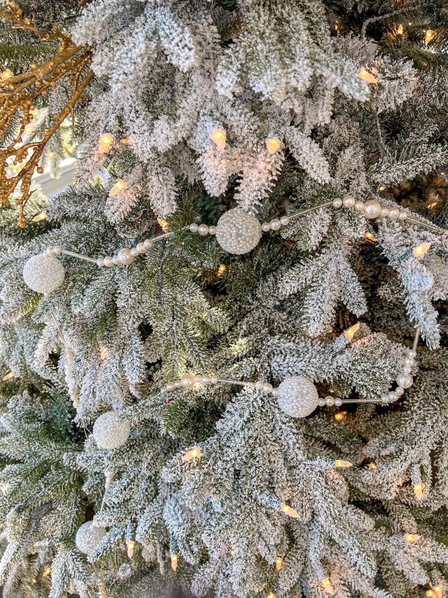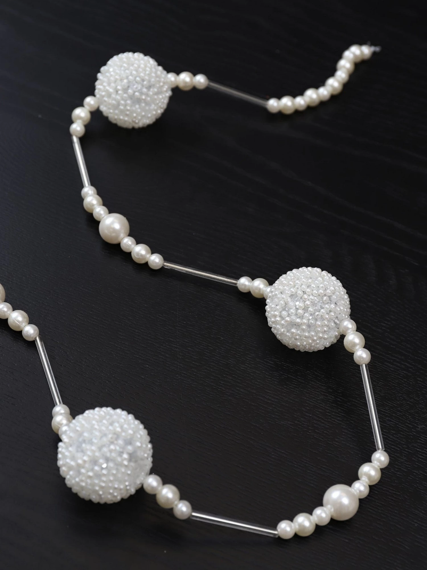 Description: This is one gorgeous white pearl garland with crystal accents and is sure to make your holiday decor bling! This will look beautiful displayed on your mantel or on the tree!