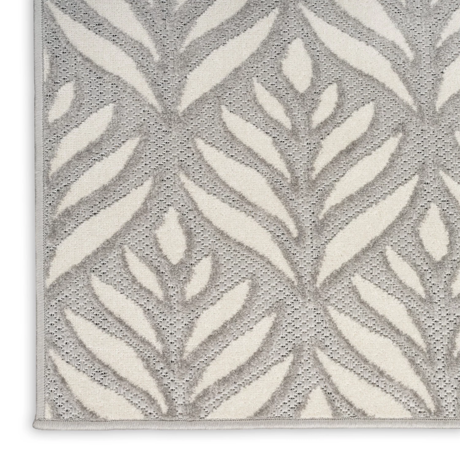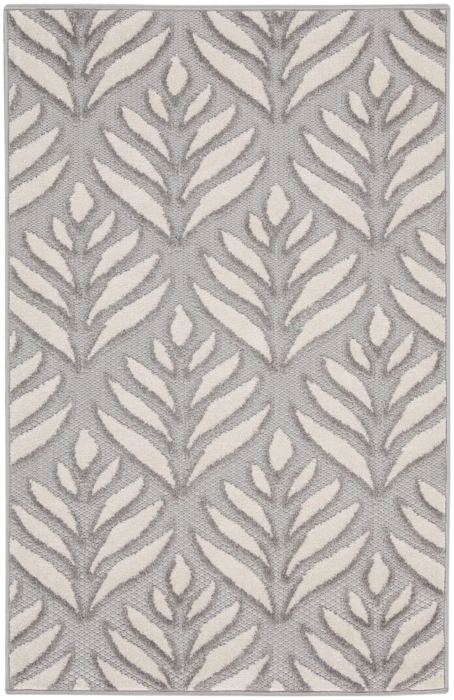 Tropical meets modern with this grey outdoor rug from the Aloha Collection. The flatwoven design is adorned with a raised, repeat palm leaf pattern that adds a subtle layer of dimension. Presented in calming colors, this botanical rug beautifully complements your patio, balcony, or deck. Made from durable polypropylene yarns that make it great for use in high-traffic indoor spaces as well, such as your kitchen, dining room, and living room.