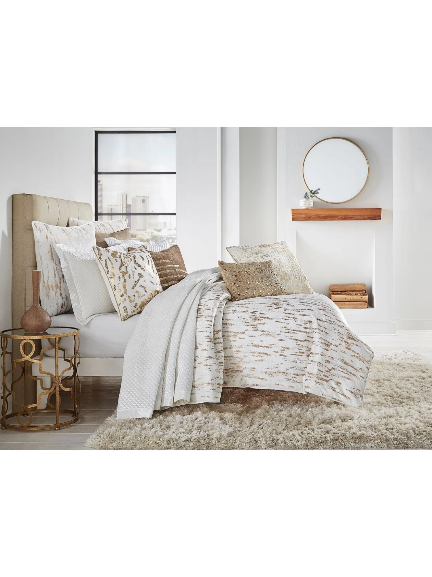 King size white velvet duvet cover with gold metallic print. **Insert is NOT included**