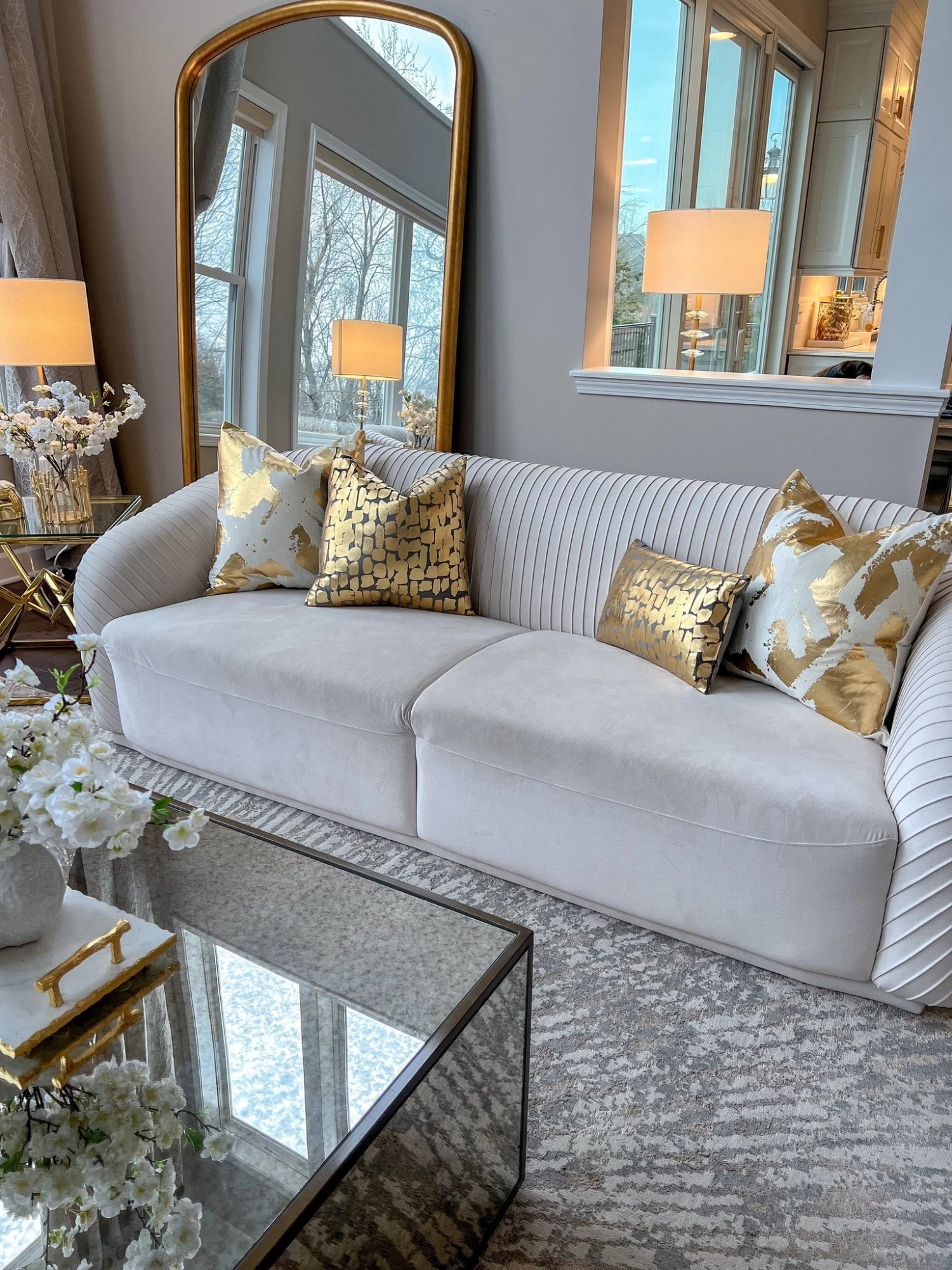 This beautiful glam pillow features a gold foiling geometric pattern over soft velvet.