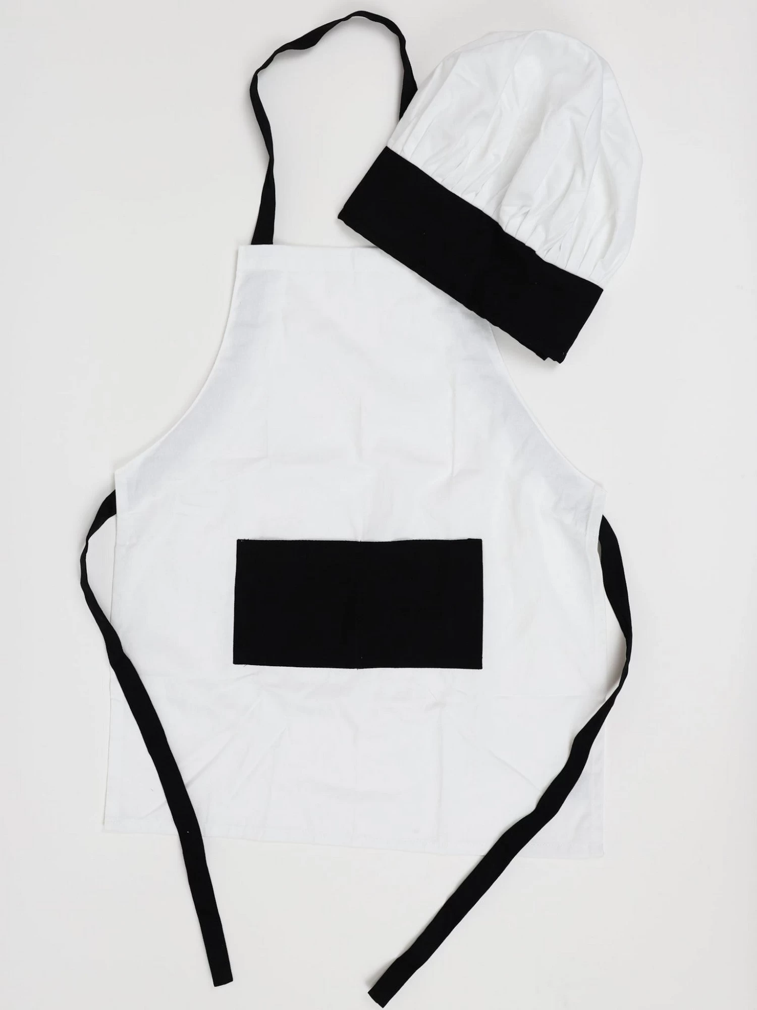 Description: This is the cutest black & white children’s apron and chef’s hat set. We think this is the perfect gift for your little kitchen helper.