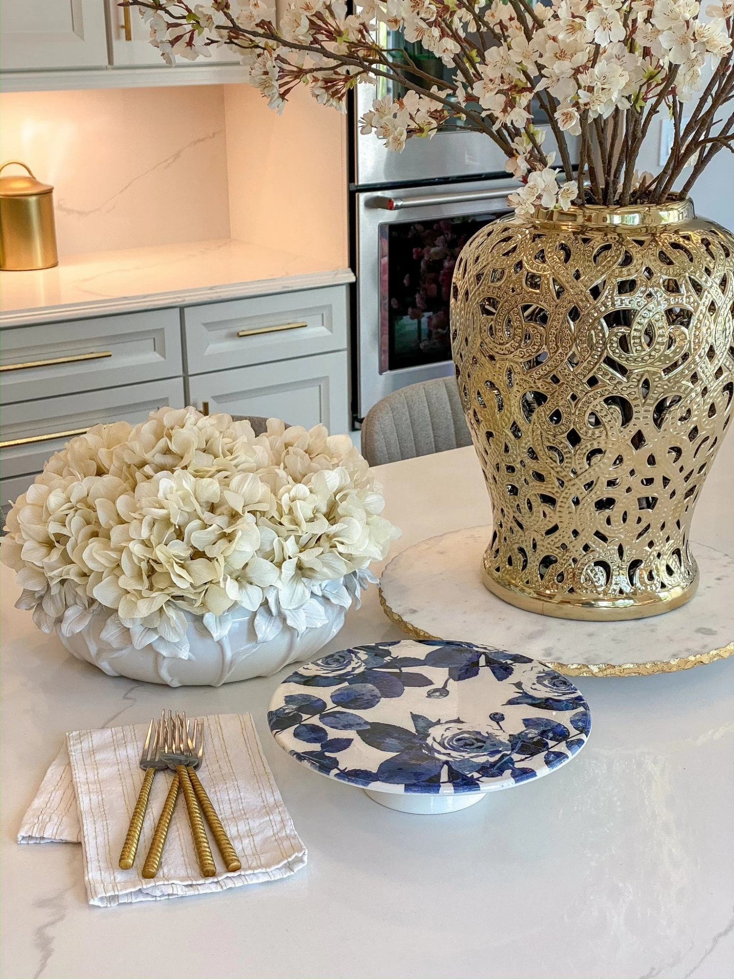 Description: We loving the dazzling blue of this ceramic cake stand! Beautiful floral details make this the perfect item for a spring display!