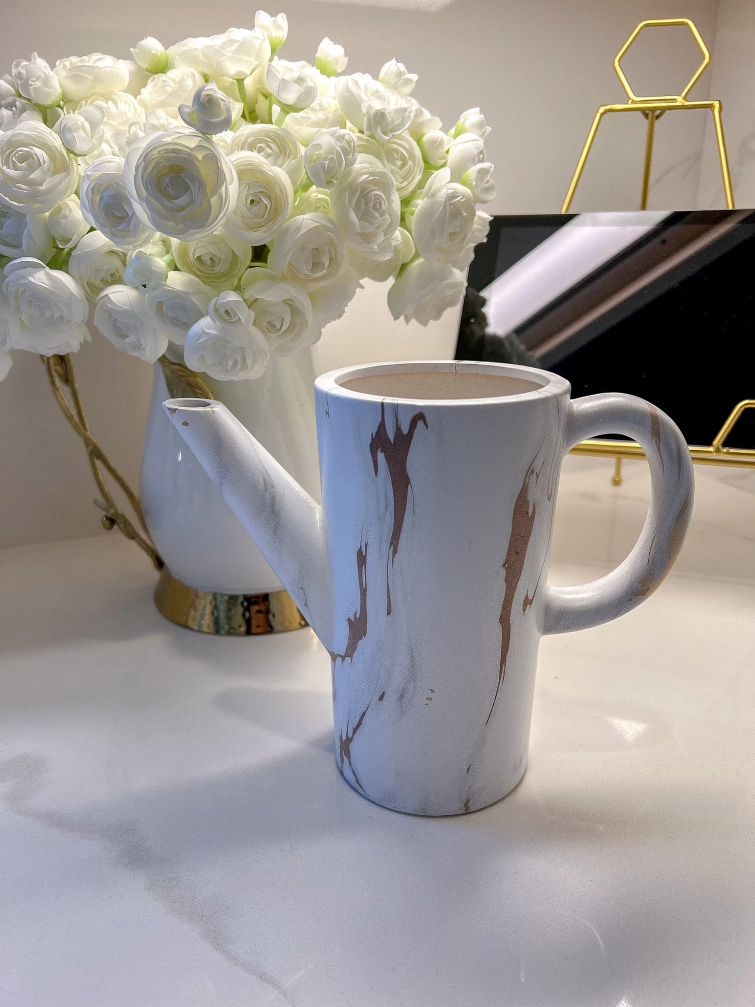 Description: This ceramic watering has a gold and white marble design and will make for a beautiful watering can or use it as a vase for your favorite IMHD faux florals.