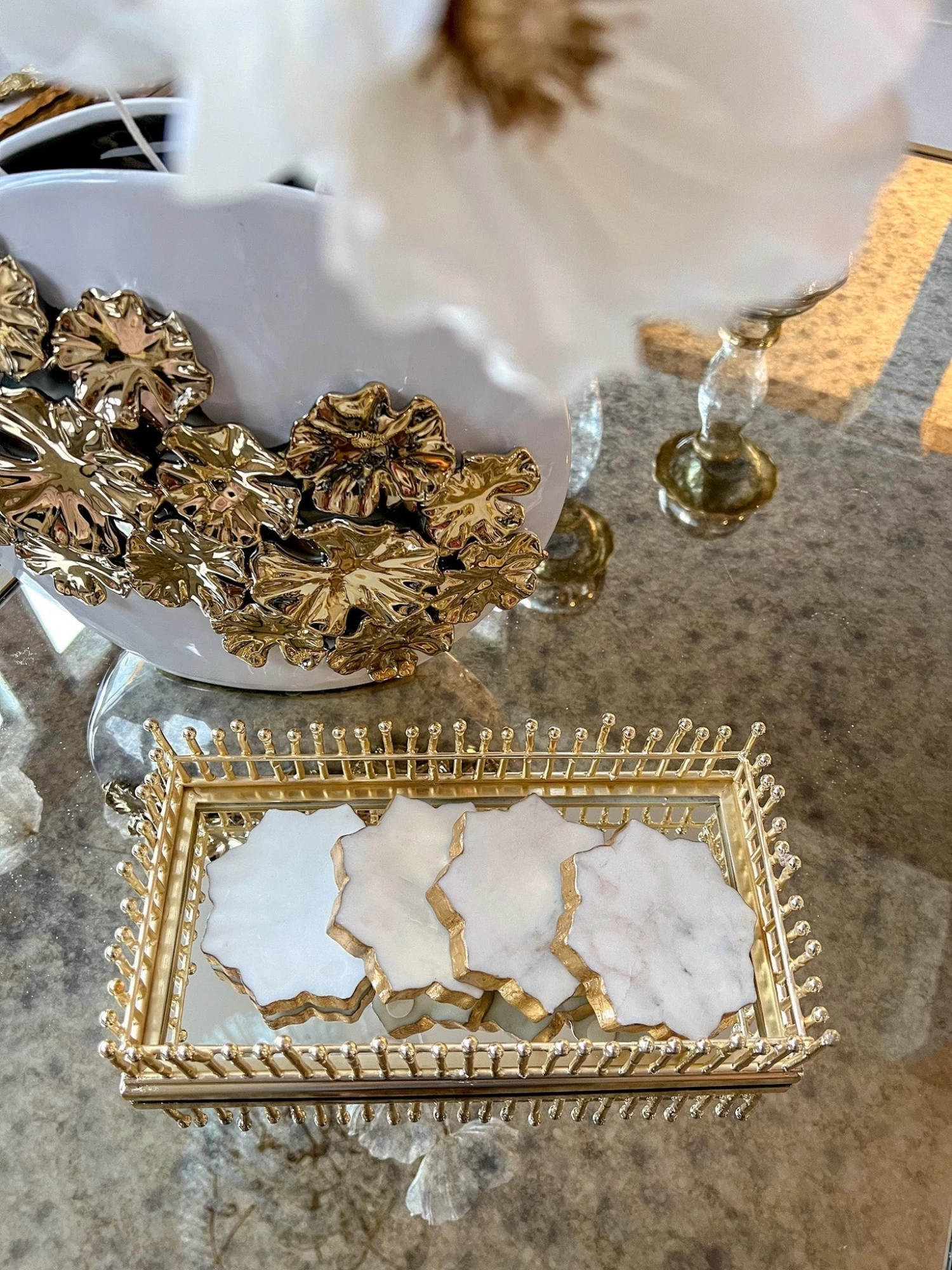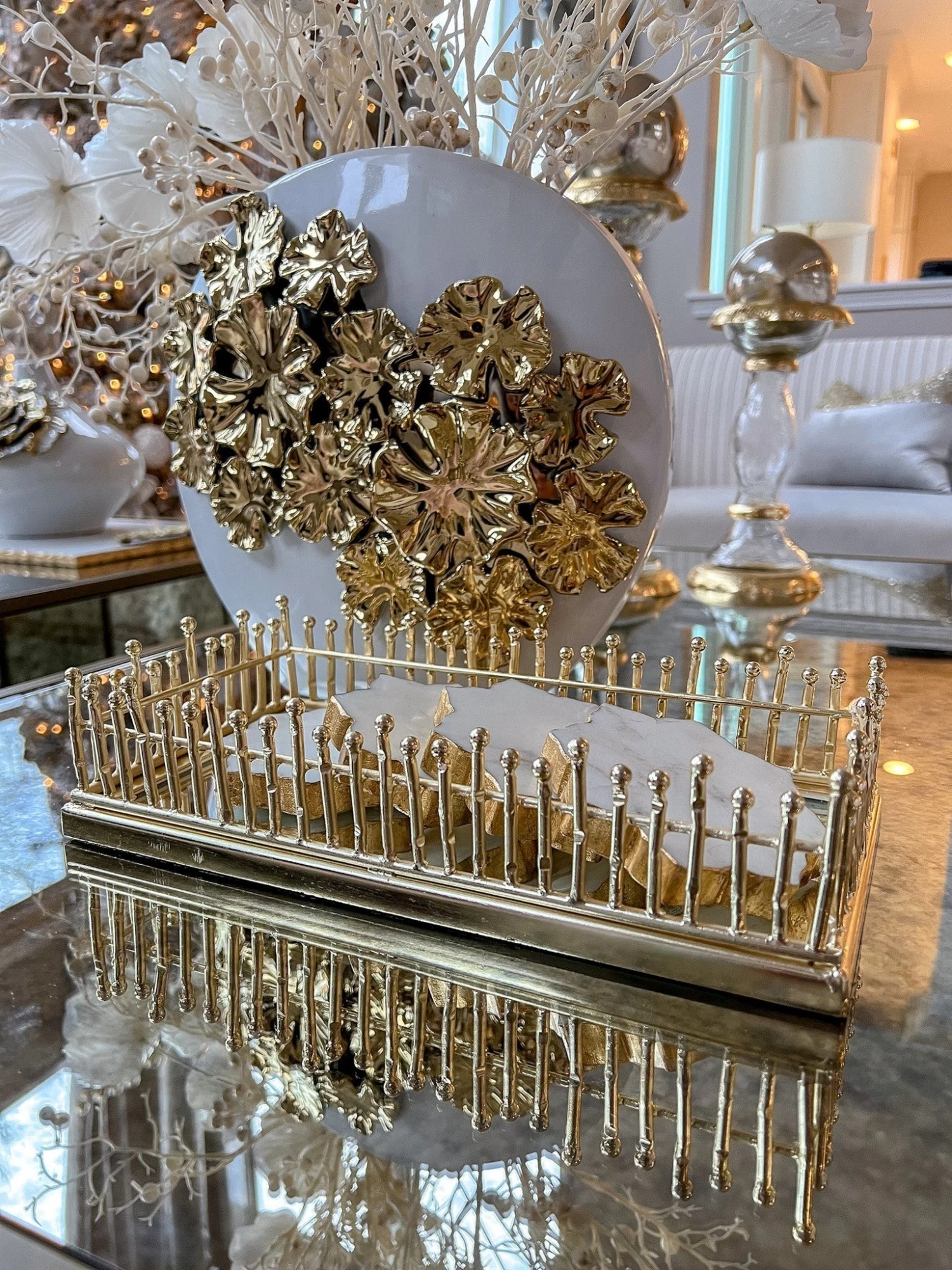Description: This stunning rectangular mirror tray offers a unique elegant linear border detail. The straight design of the metal border featured stunning textures and details!