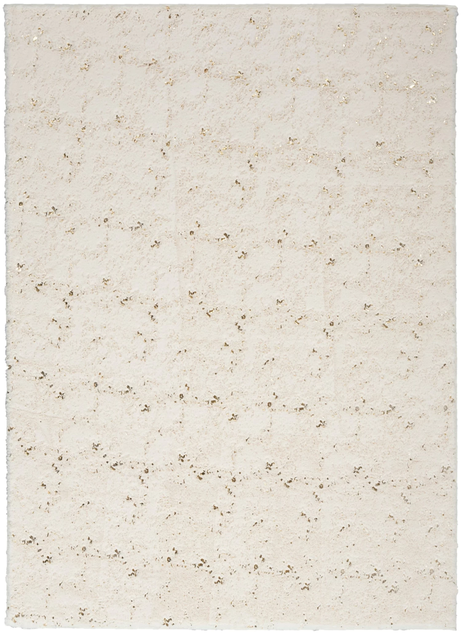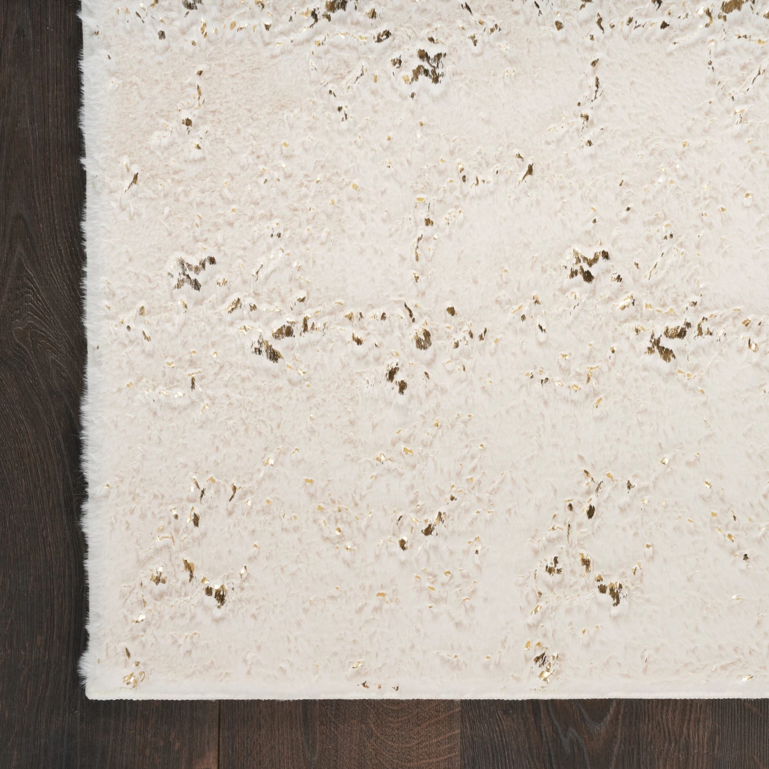 Like the warmth and comfort of your favorite fleece blanket, this ivory shag rug from the Cozy Shimmer Collection generously delivers engaging texture and nuanced glamor. Hand-tufted from polyester yarns, this plush rug is accented with metallic gold highlights that offer a modern touch. A non-slip back adds safety and practicality, keeping the rug in place while protecting your floors.