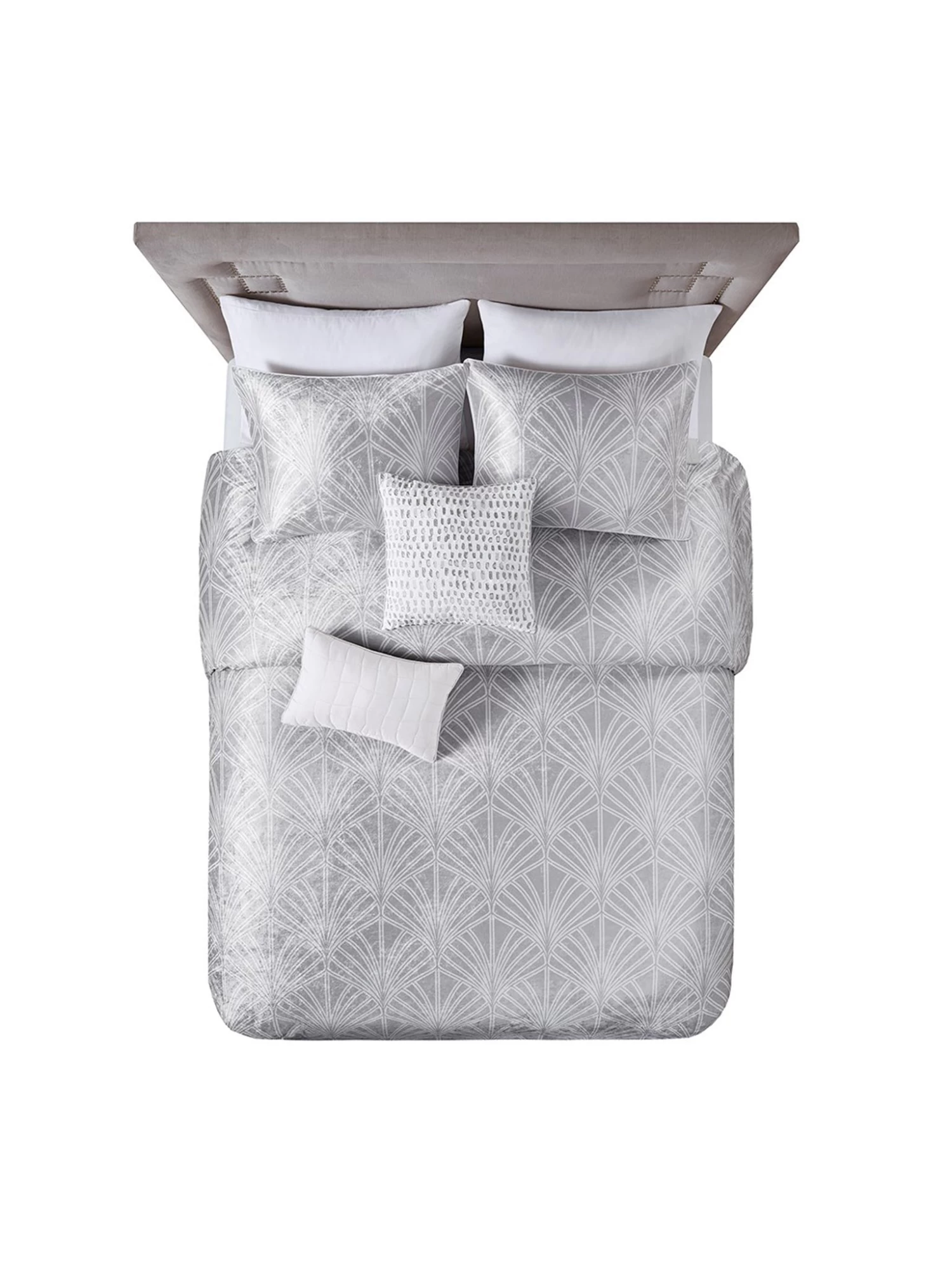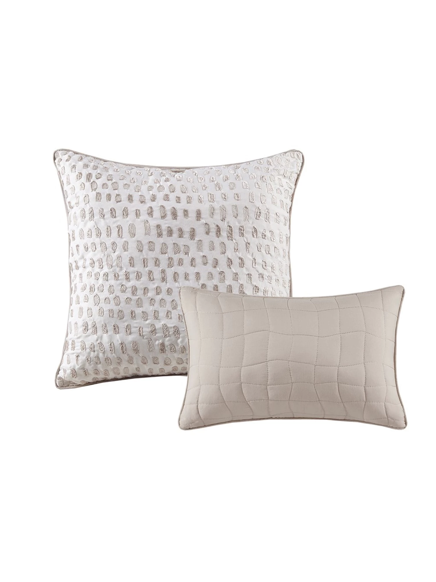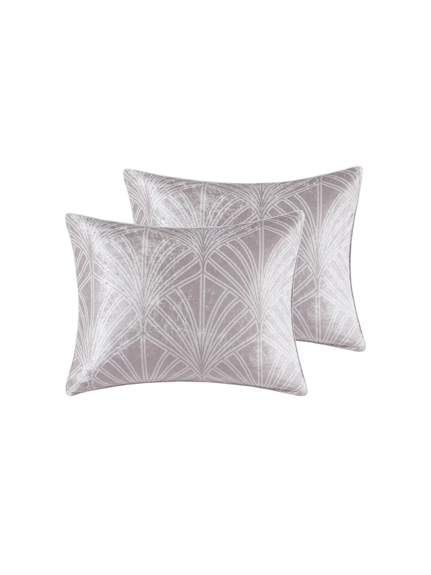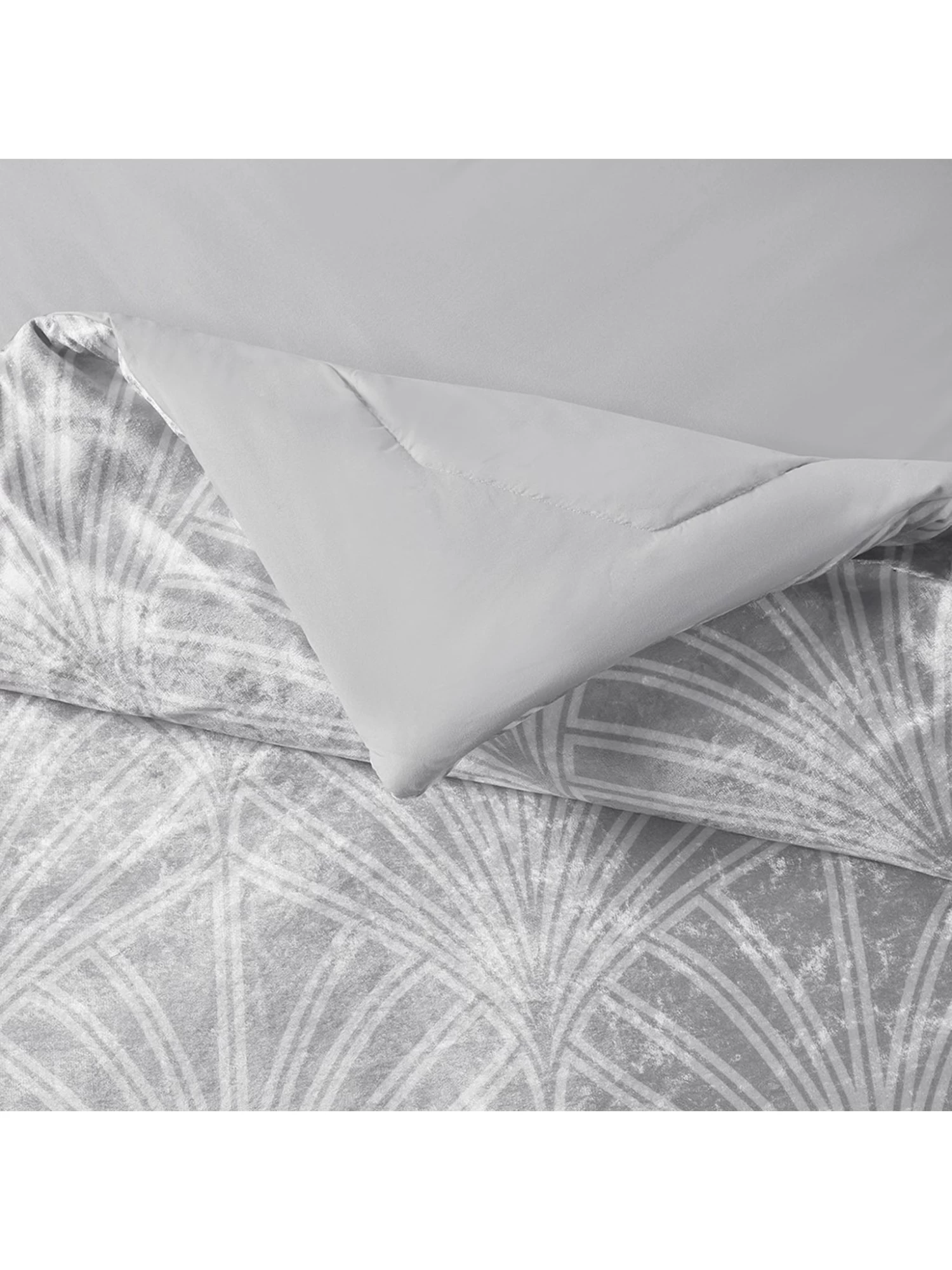 Description:Â Give your bedroom a luxurious update with the 5 Piece Crushed Velvet Comforter Set. The oversized champagne crushed velvet comforter set features an art deco pattern for an elegant bedroom style. Embroidered abstract patterns in the square pillow and oblong pillow add the finishing touches to complete the look. Machine washable for easy care, this crushed velvet comforter set adds elegance to your bedroom and uses hypoallergenic filling to provide exceptional warmth and comfort.