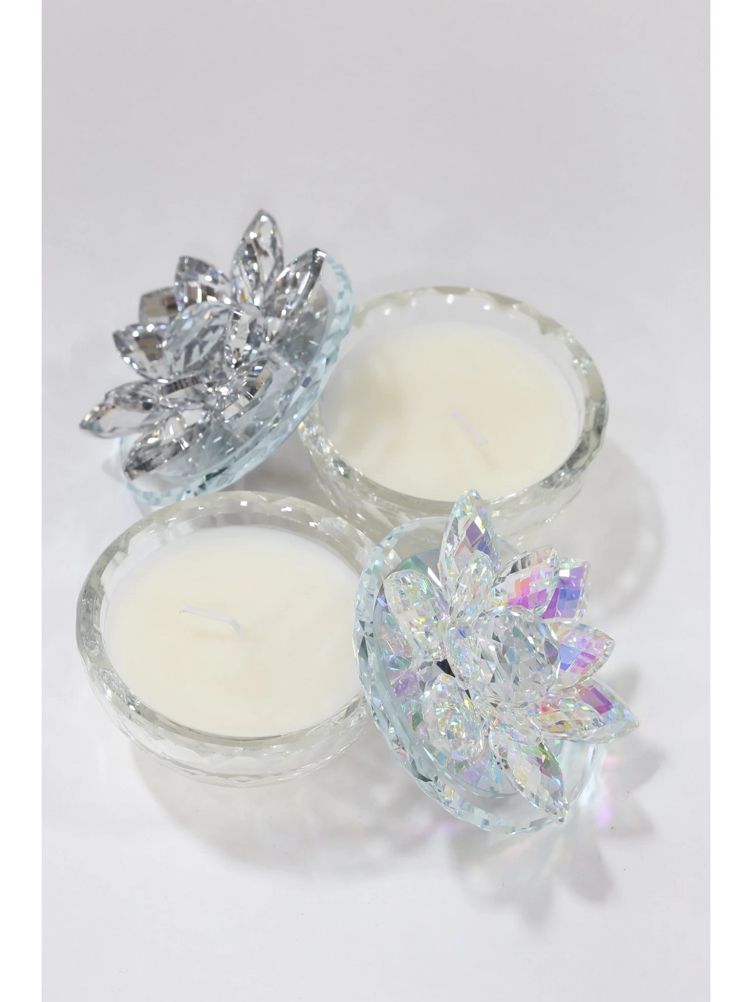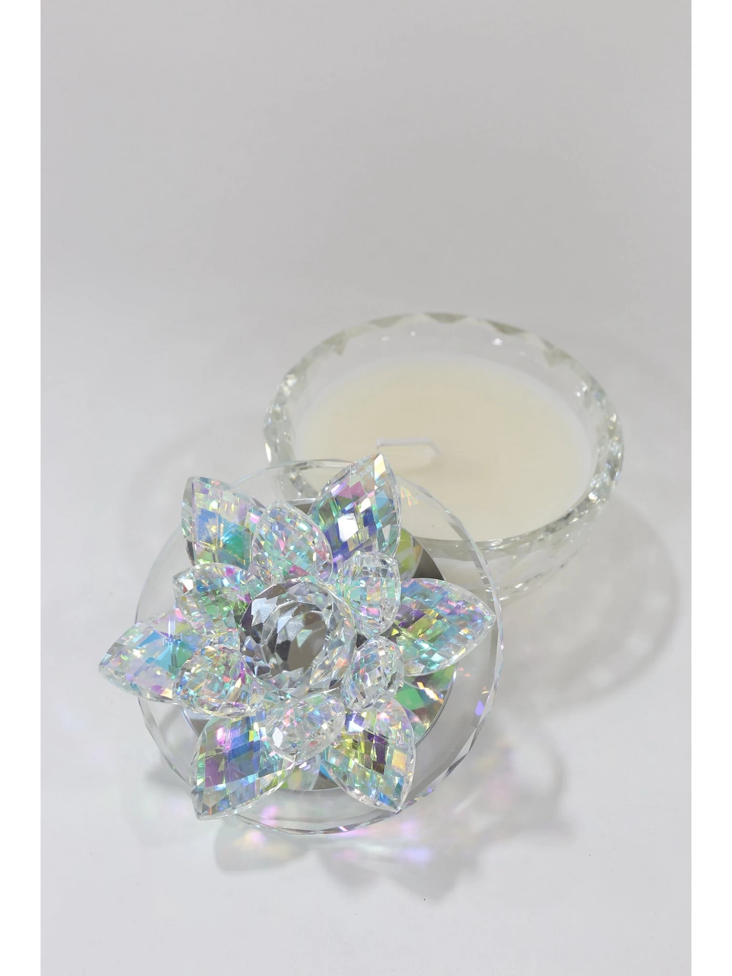 Description: This beautiful lotus crystal candle offers an elegant and unique way to light your home. Infused with the scent of fresh linen, this candle is sure to help you relax after a long day.