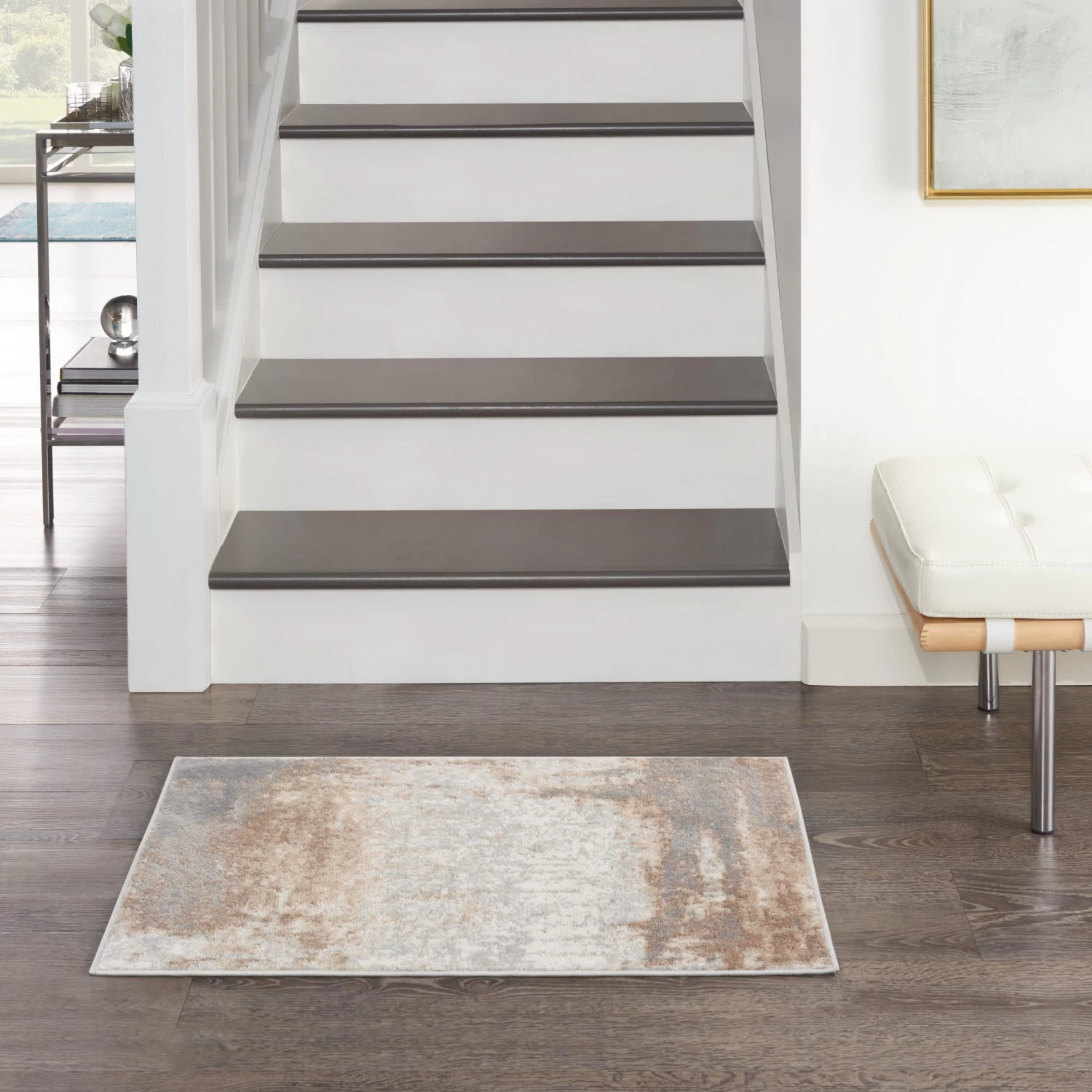Ground your room in the depth and visual appeal created by this Elation Collection area rug. A blend of vintage styled distressing and modern abstract patterns are rendered in tones of grey, beige, brown, and ivory for an easy complement to contemporary decor. Machine made of polyester and polypropylene in a low-profile, easy to clean pile, it’s an ideal choice for high traffic areas.
