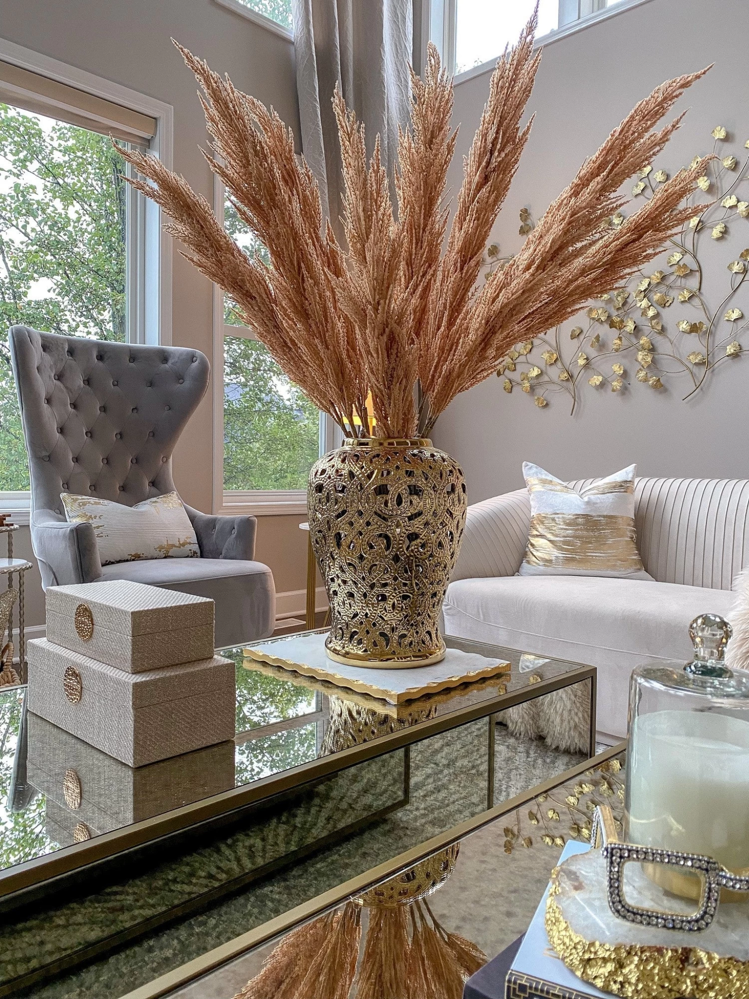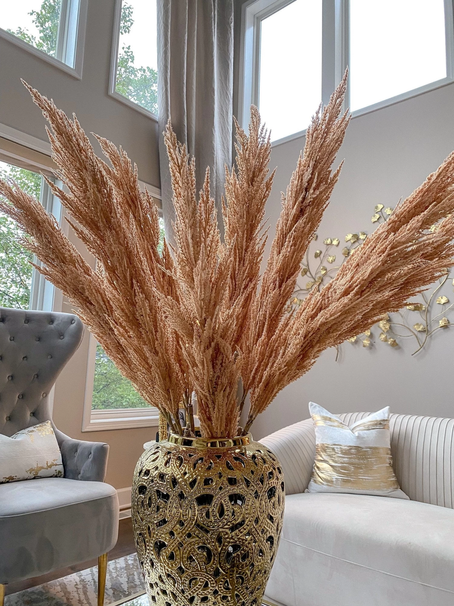 Description: This beautiful beige pampas stem is perfect for fall! The gorgeous textures offer a beautiful visual, and the long stem makes this perfect for your taller vases!