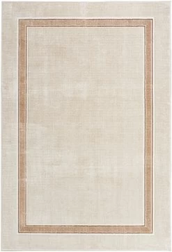 This classic bordered rug from the Glam Collection adds a chic look to your living room or bedroom. The simple design is enhanced with a ribbed pattern and matching border in silver and golden brown and is finished with a glamorous sheen that shifts tones under different lighting. Made from softly textured, easy to clean polyester.