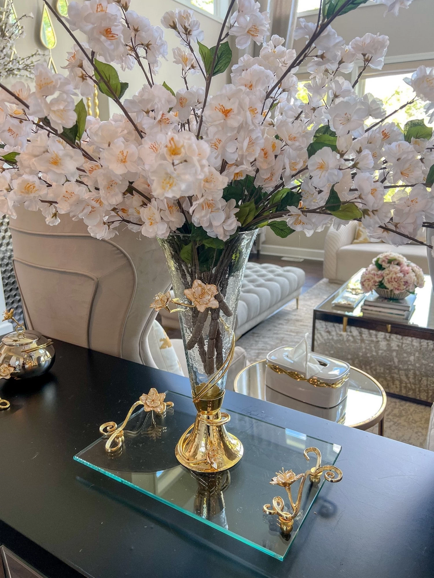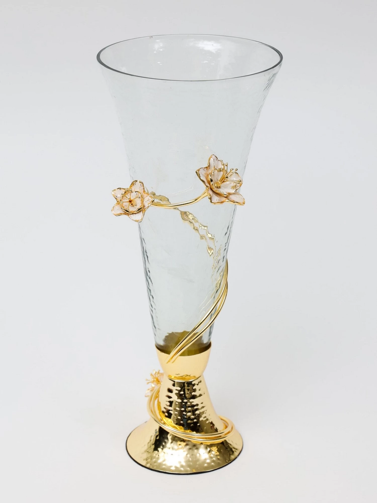 Description: This beautiful glass vase is beautiful on its own or with your favorite IMHD faux florals. This piece looks stunning layered with the glass tray from the Celine Flower Collection!