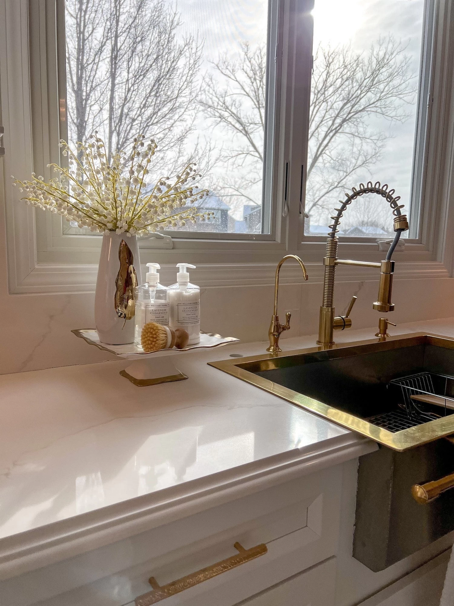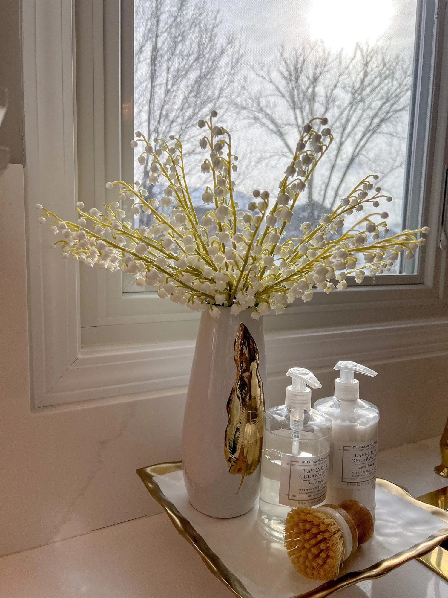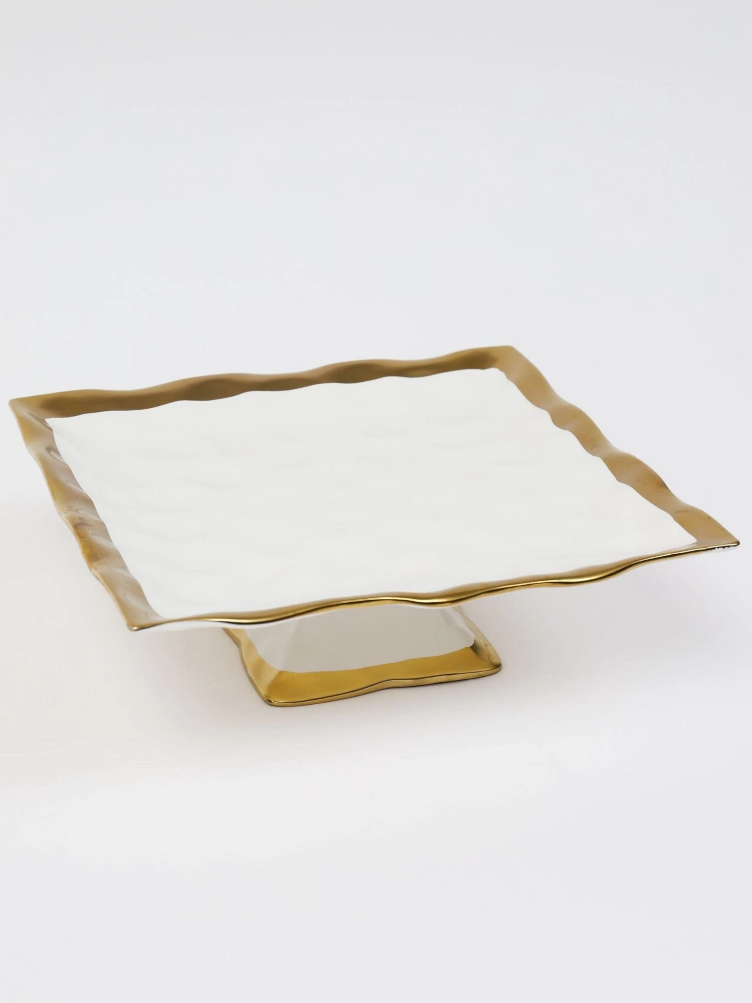Description: We love the classic style of this ceramic cake stand with its beautiful gold trim details. This also makes a beautiful display for your soaps on your kitchen counter.