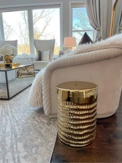 Description: This beautiful gold candle tray is available in 2 sizes. This is a serene Cashmere scented organic soy candle. Burn time is 30 hours for the small 3 wick and 16 hours for the large 6 wick.