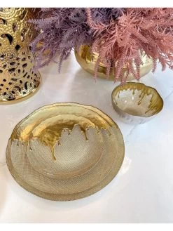 Description: This gold-dipped collection is absolutely stunning! We love the elegant tone of the gold. Wow your guests with this collection at your dining table, or just pick a few pieces to display as serving or layering pieces.