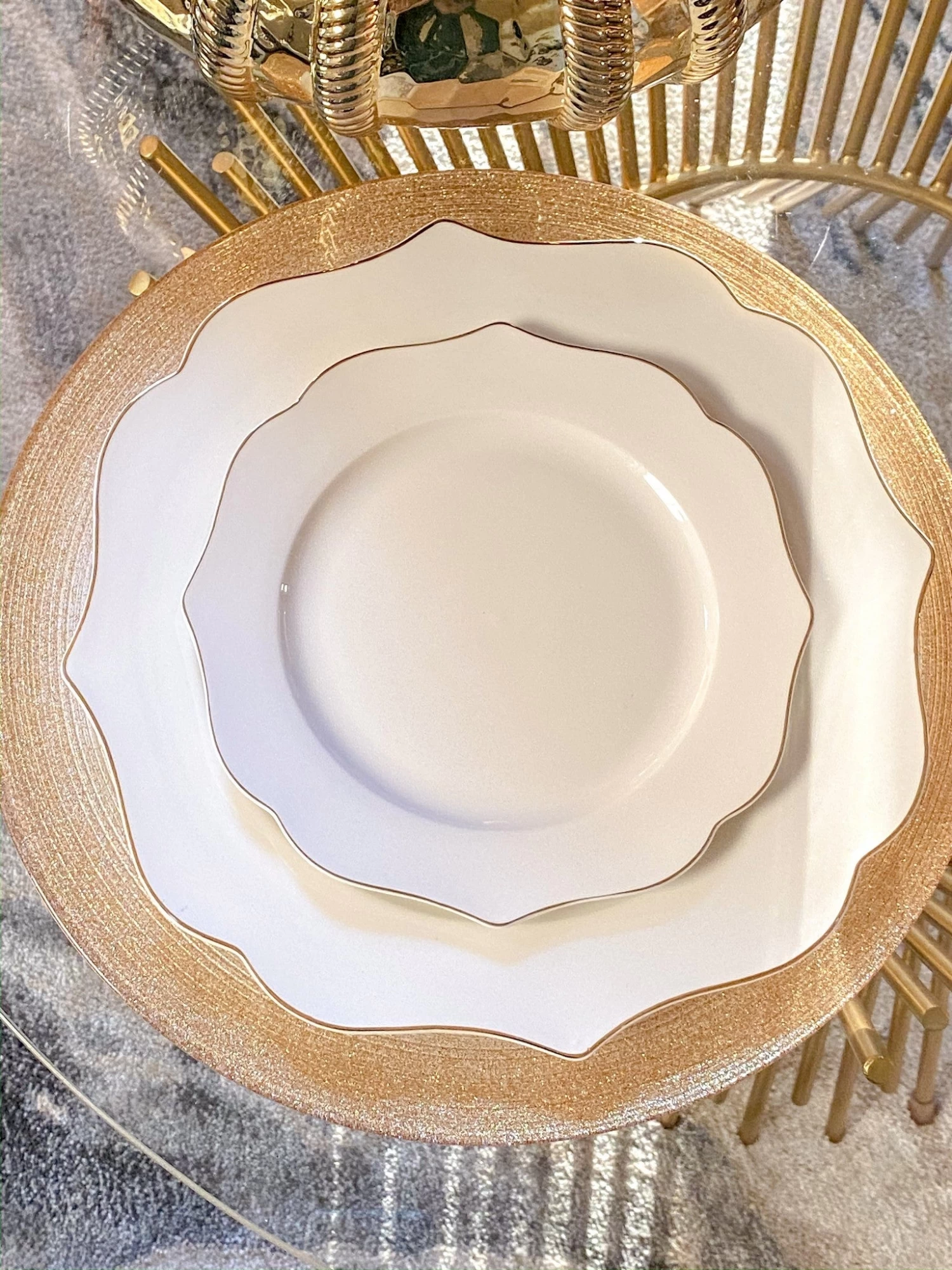 Description: This gorgeous scalloped edge glossy white dinnerware set is sure to become a favorite. This is perfect for everyday use but will make a stunning statement at your next holiday gathering. The set includes 4 Dinner Plates, 4 Salad Plates, and 4 Bowls.