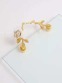 Description: This wooden paddle serving board will add unique elegance to your serving display! Each piece is handmade with a glossy resin finish featuring gold and pink colors, and encrusted with clear shimmering stones.
