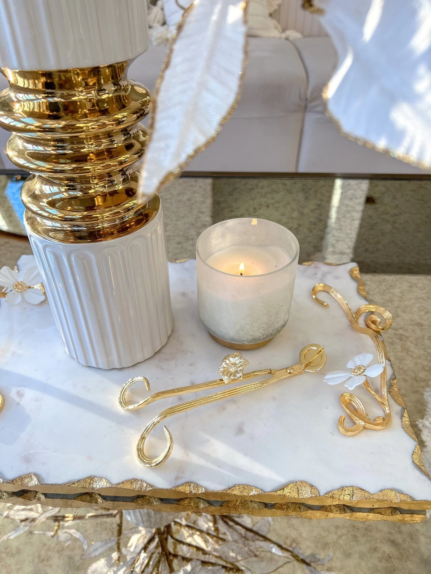 Description: The unique gold piece that is functional and stylish- Perfect to keep next to your favorite candle to add that unique touch of glam.