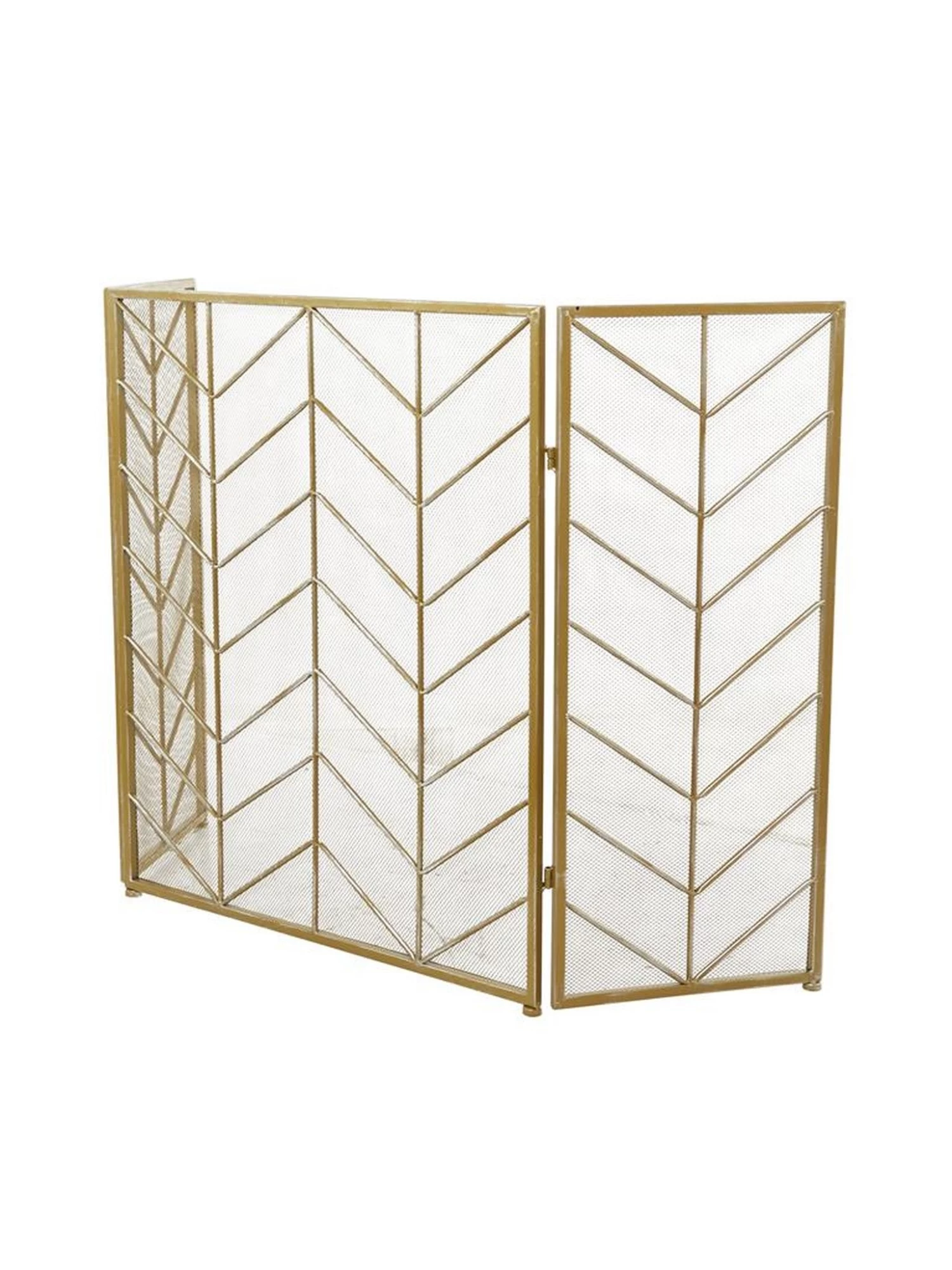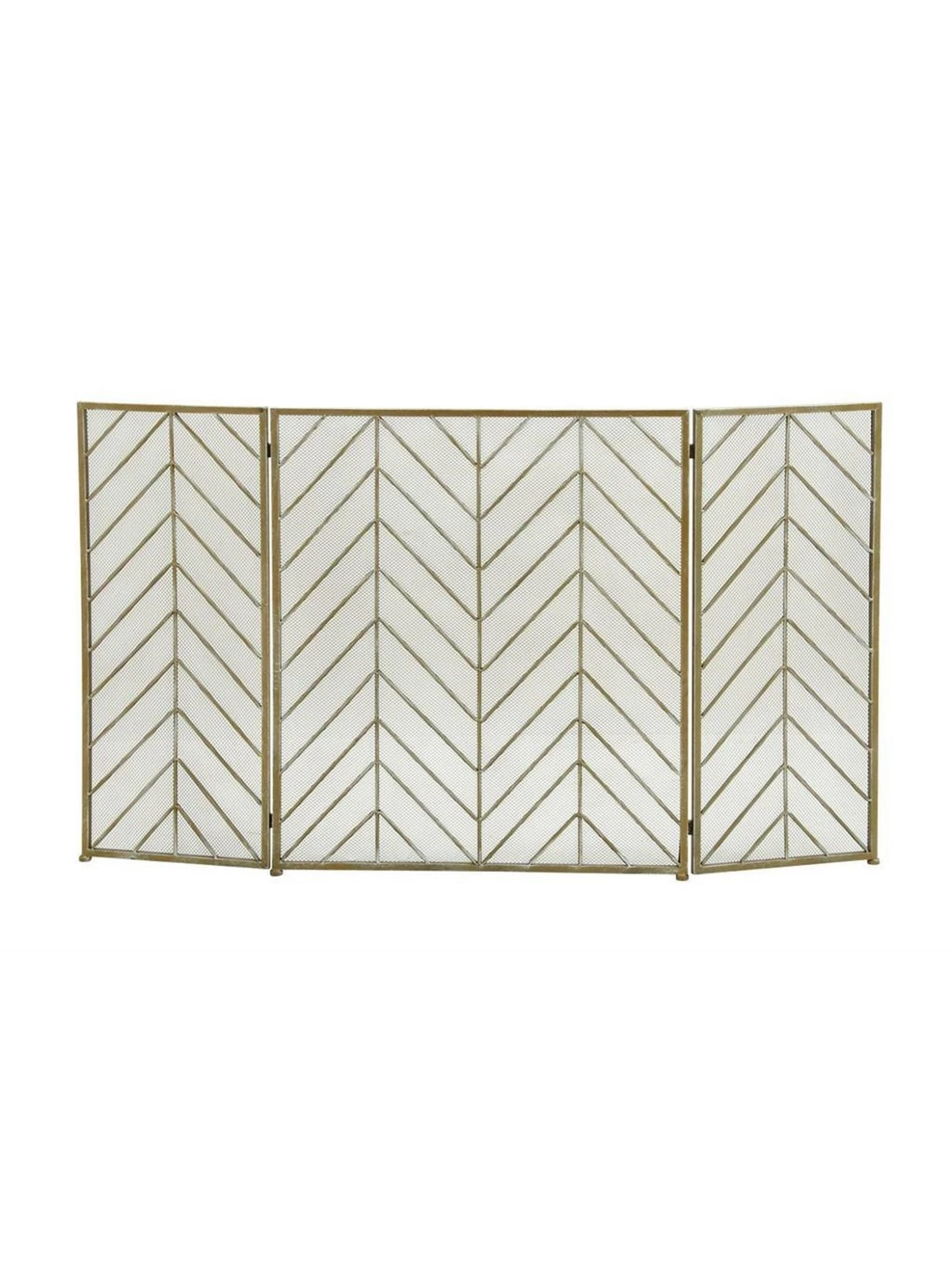 Description: This 3-panel, heat-resistant metal fireplace screen has a distressed look. Its gorgeous design features a zigzag chevron pattern and is designed to block popping embers, providing safety and adding style to your home.