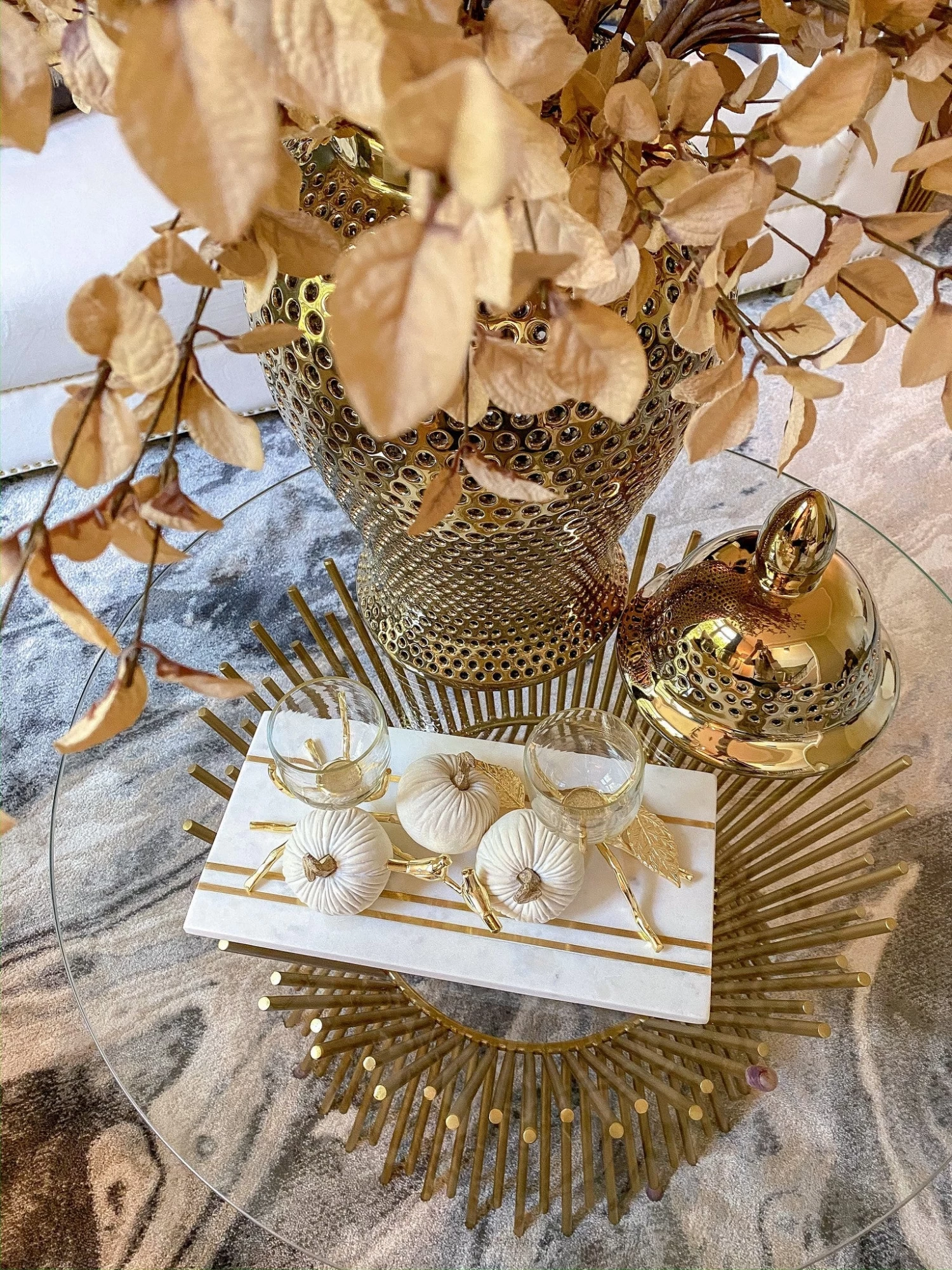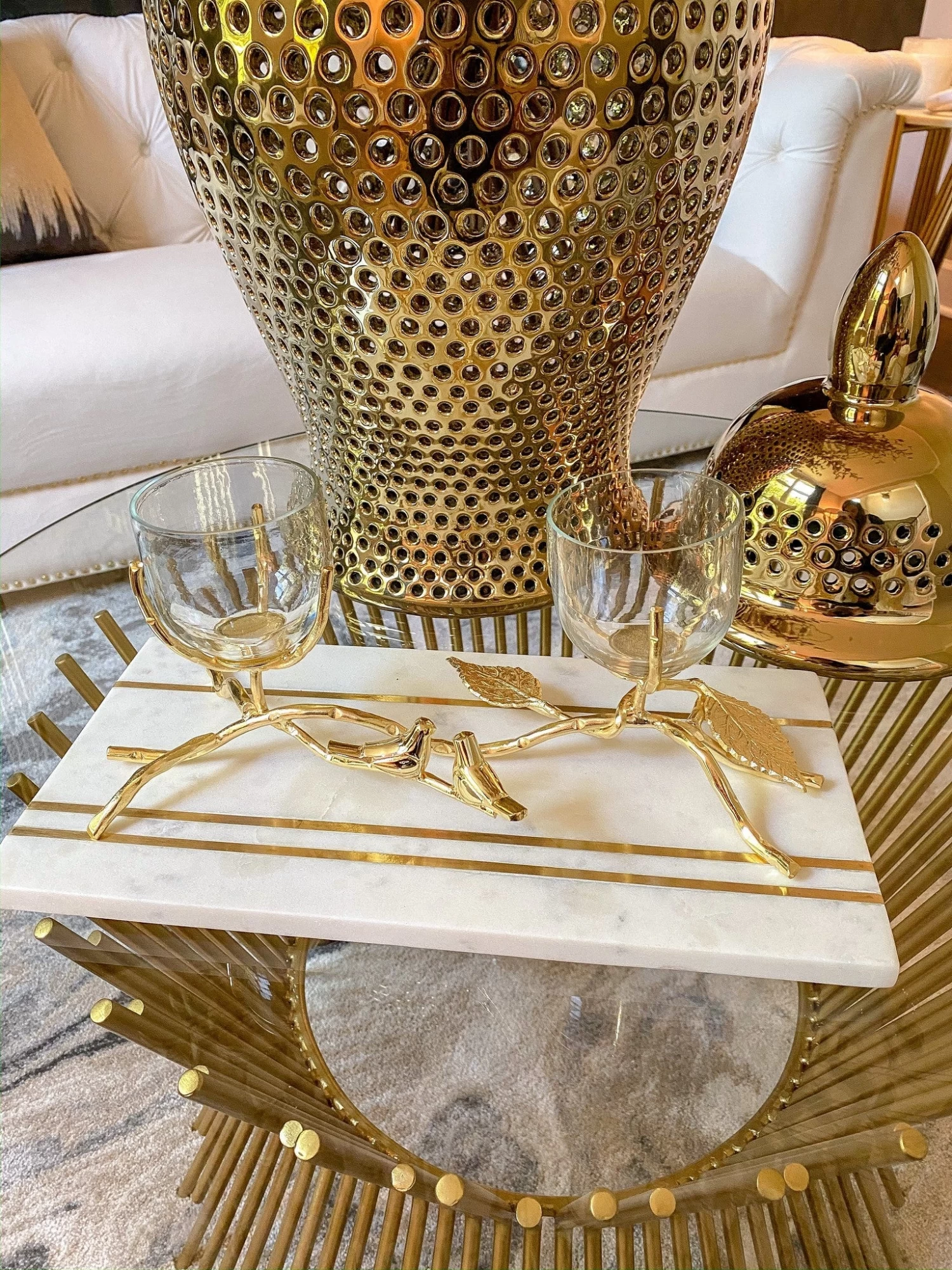 Description: This gold candle holder features bird figures and leaves to add elegance to your candle display.