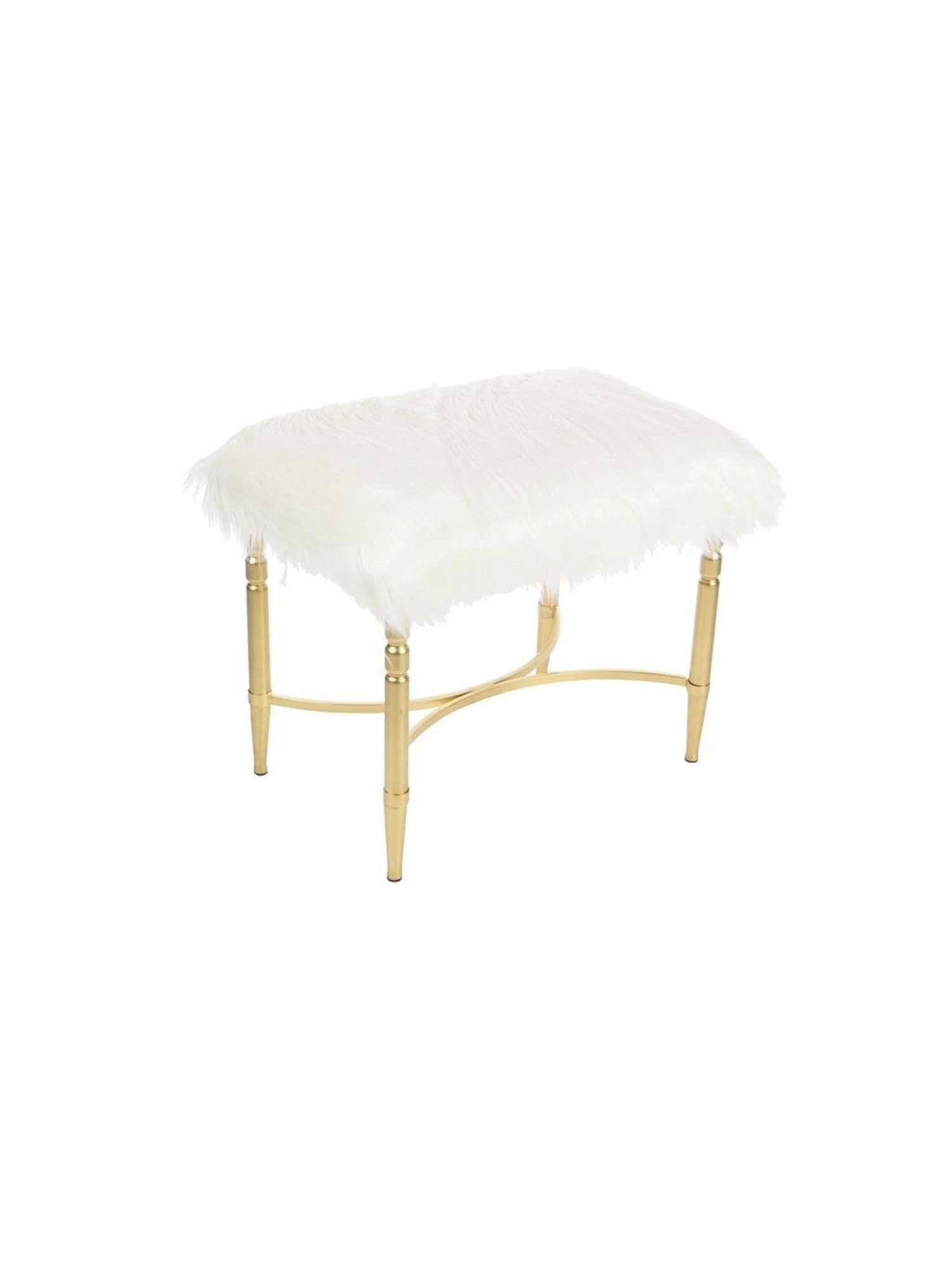 Description: This contemporary accent stool features a rectangular faux fur cushion for an opulent look. It is fitted with felt or rubber stoppers on the base to protect floors from scratches and slipping. With a weight limit of 250 lbs., this stool is intended for indoor use only and requires some assembly. Wipe clean with a dry cloth.