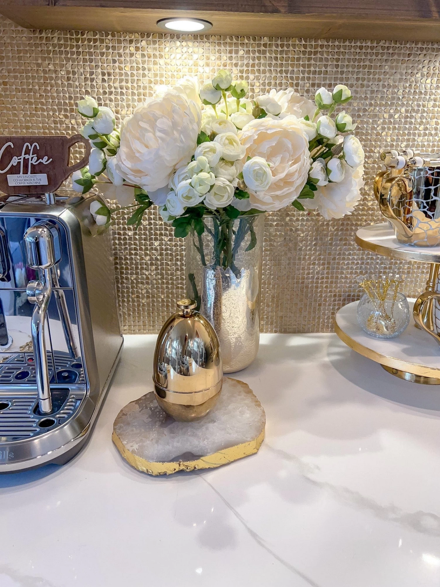 Description: These oval shaped gold shiny utensil holders are sold in 2 styles. One holds hammered tea spoons and one holds hammered mini forks. These are the cutest way to style your utensils on your coffee station or with your snacks.