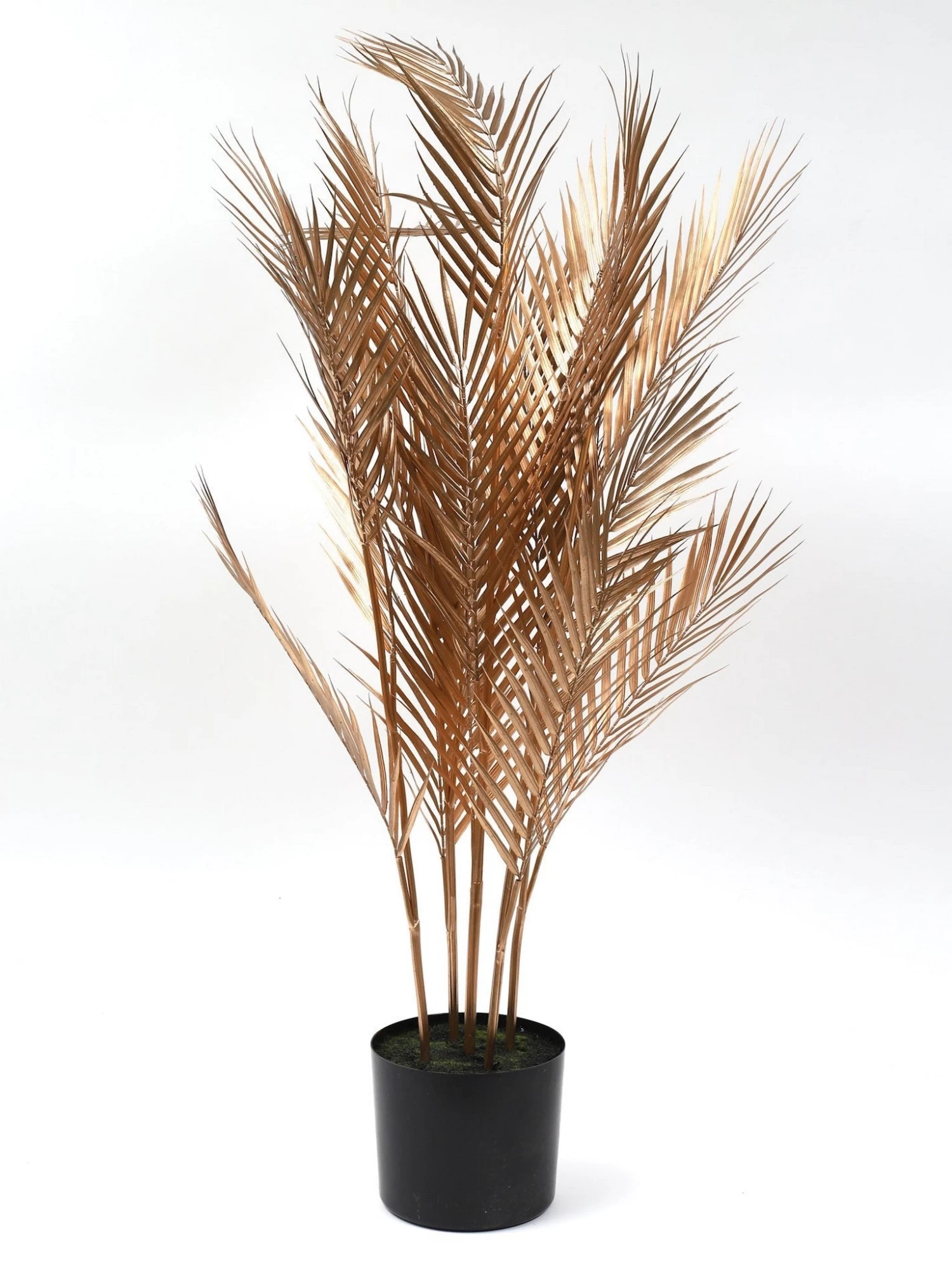 Description: The tropics with a twist, the natural organic hues of this potted golden palm tree will bring a little sunshine into your space. Rising to almost four feet tall, separate trunks are secured into the planter base, bursting with numerous distinctively-shaped palm leaves.