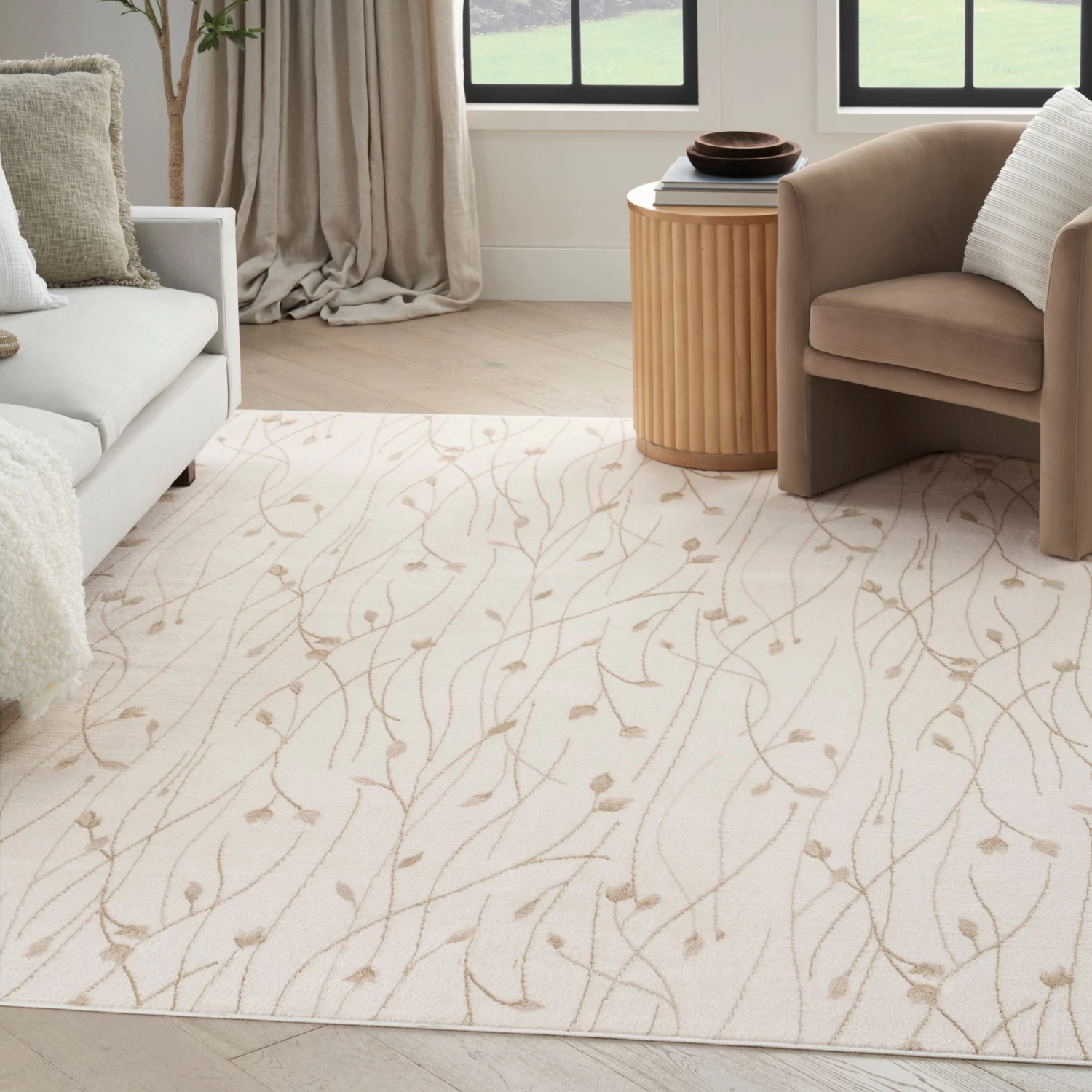 This beige Grafix area rug adds a stunning sense of sophistication to your home. The graceful floral pattern stretches across its softly textured ground, inviting you to relax. Machine-made from durable polypropylene yarns for lasting style and stress-free maintenance – ideal for placement in your living room, bedroom, office, entryway, or kitchen.