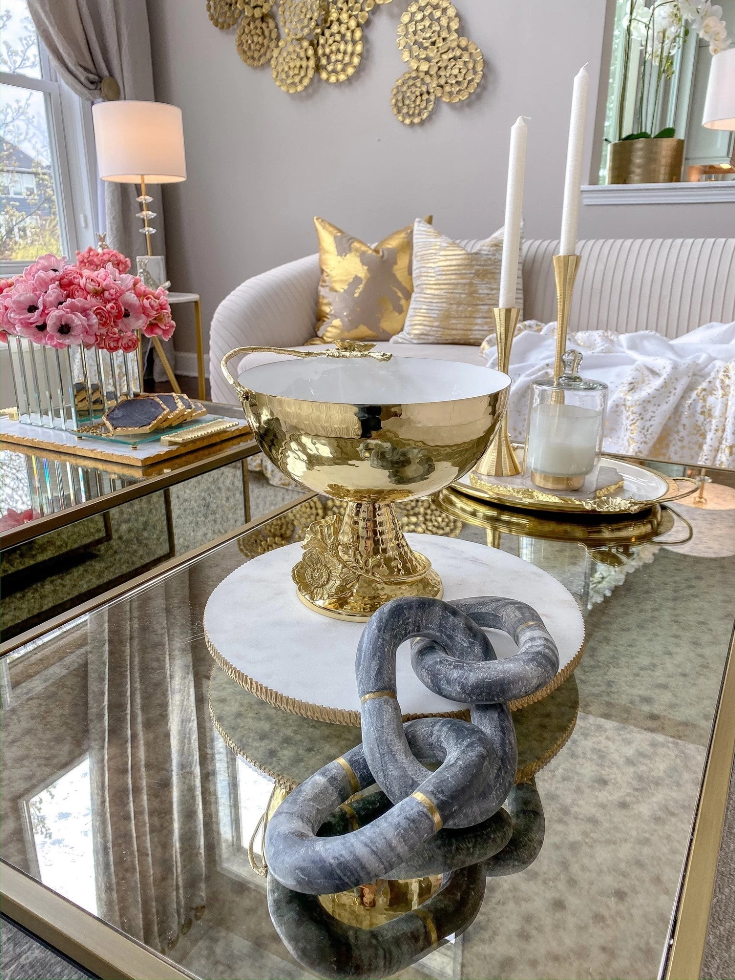 Description: This grey marble chain decor is a great focal piece for your vignette!