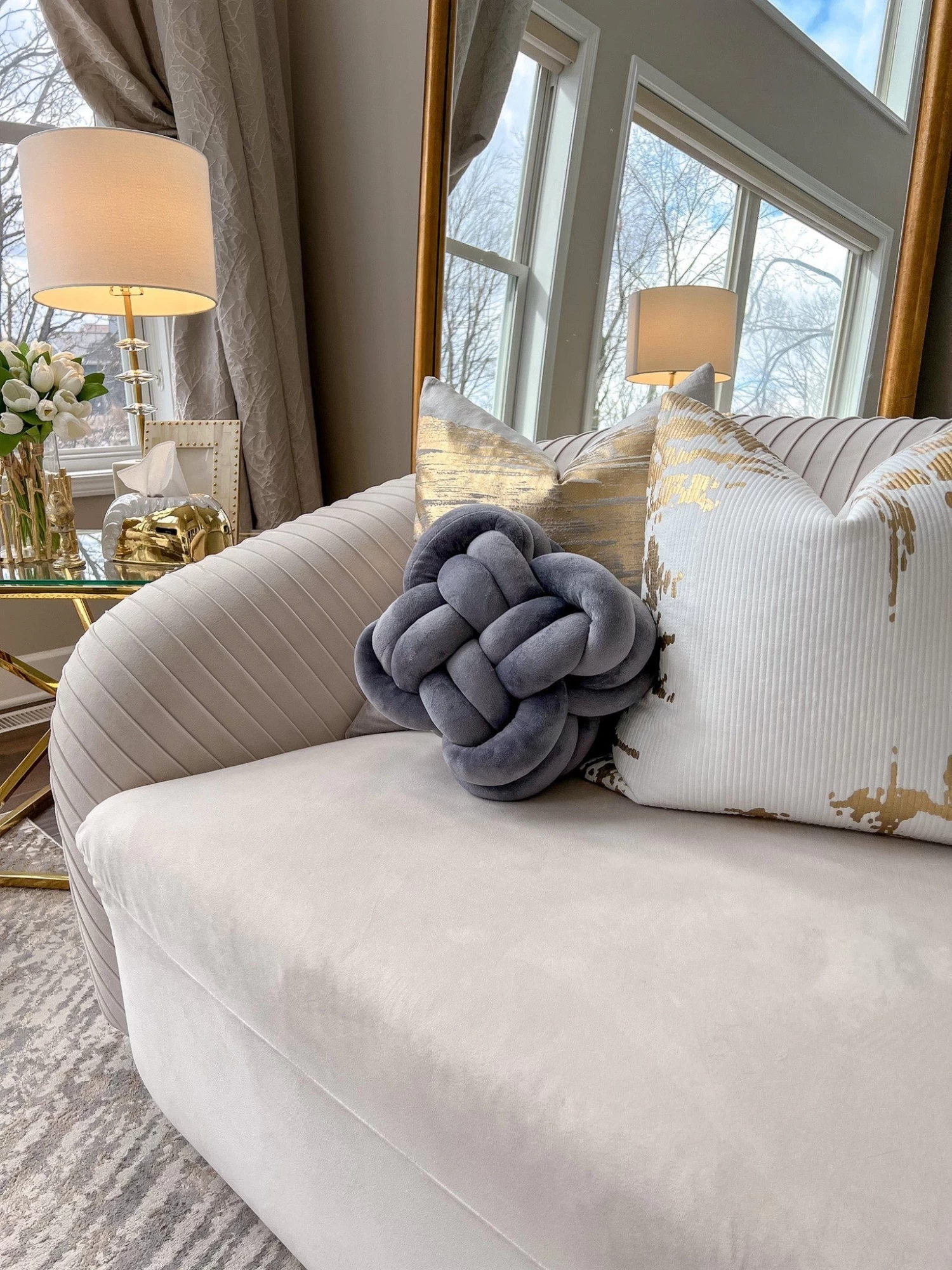 Description: This small grey knot pillow is the perfect accent pillow for your sofa or armchair. This pillow is so soft and cozy for the colder months but can be used as accent pillows all year round!