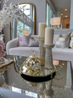 Description: This beautiful two-tiered cake stand is a great piece of elegant design. The gold textured details complement the glossy white ceramic to create a timeless look of sheer elegance and glam.