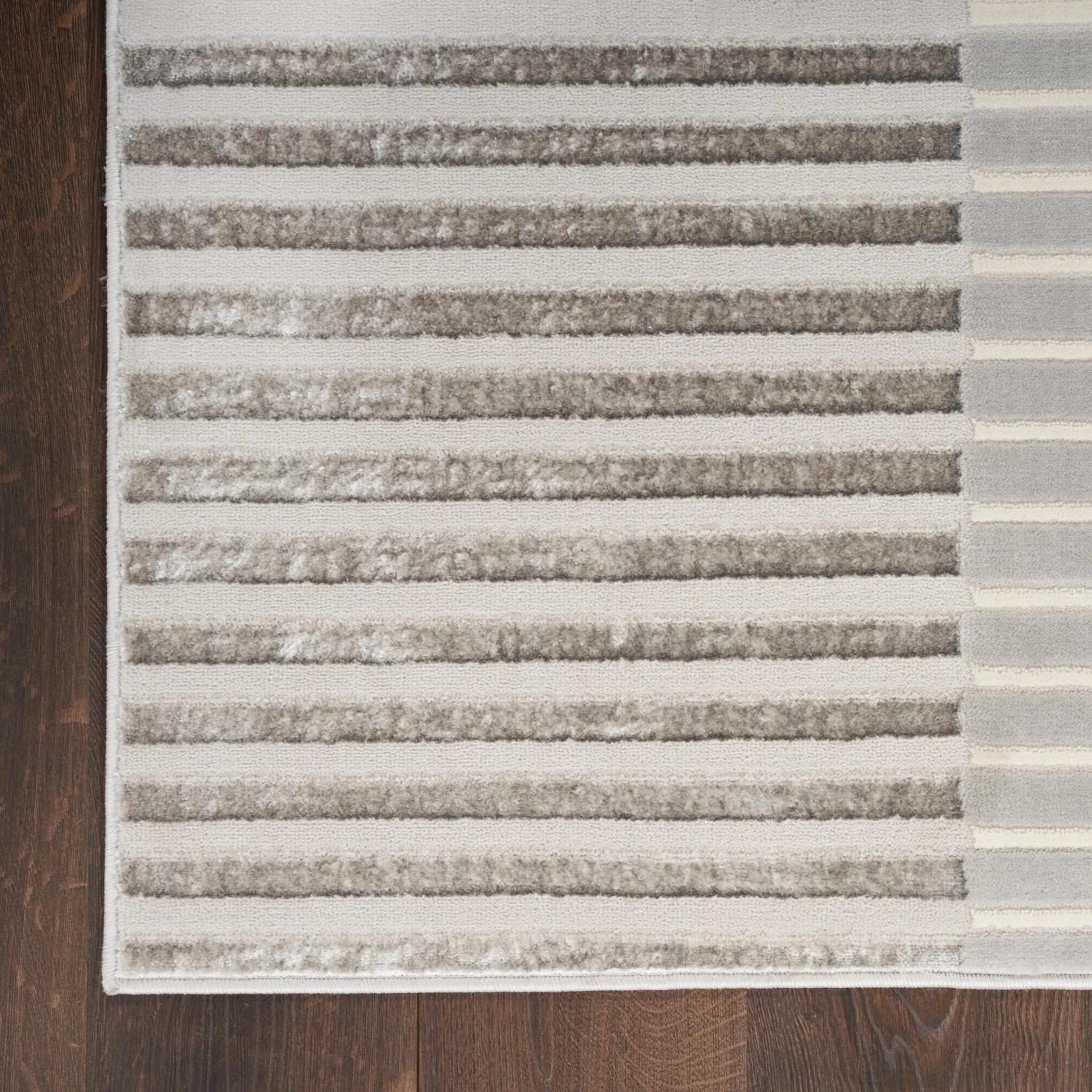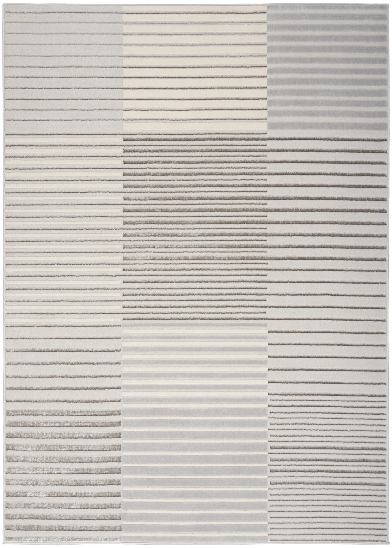 Add an instant touch of modern glamour to your home with this silver-grey striped rug from the Inspire Me! Home Décor Brushstrokes Collection. Rows of stripes of varying sizes, enhanced with a metallic shimmer that shifts in tone under ambient lighting, create a visually appealing look designed to spark conversation. This contemporary rug has a softly textured high-low pile that offers comfort and warmth.