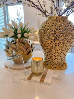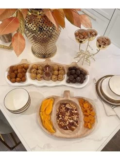 White Ceramic Tray With Gold Textured Design Handles ” From Pops Of Color Home Collection”