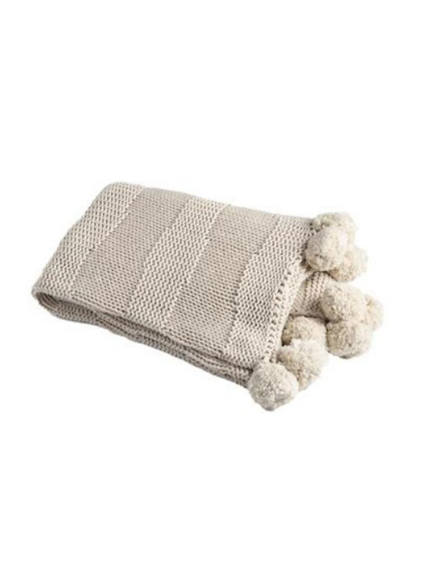 Description: These soft Chunky knit throws are embellished with hand-crocheted edges and soft pom-poms. Drape them elegantly over sofas and armchairs and create an inviting living space with these muted tones and luxurious materials.