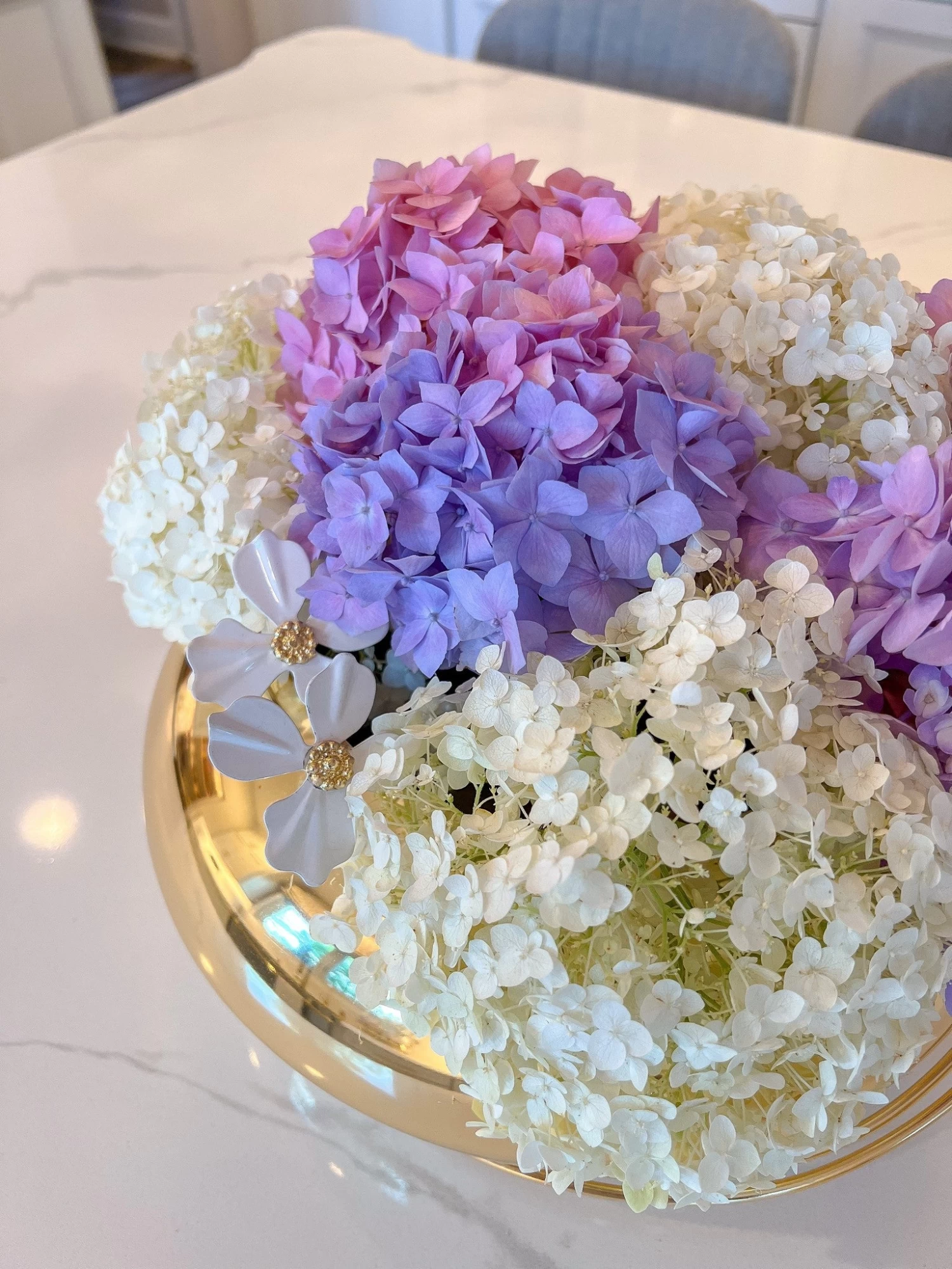 Description: This stunning round gold vase/bowl is simply beautiful styled with your favorite IMHD florals!
