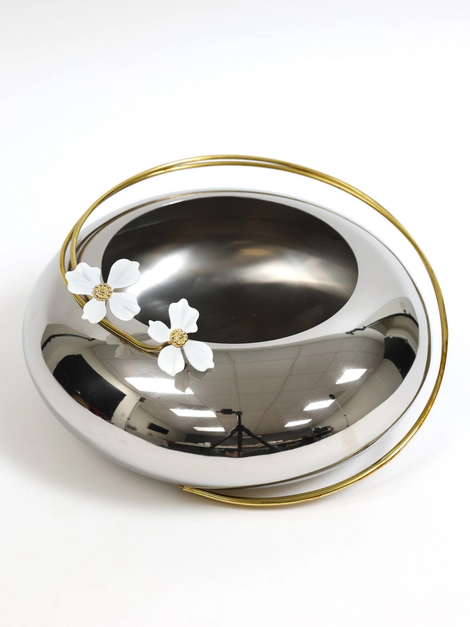 Description: This stunning round gold vase/bowl is simply beautiful styled with your favorite IMHD florals!