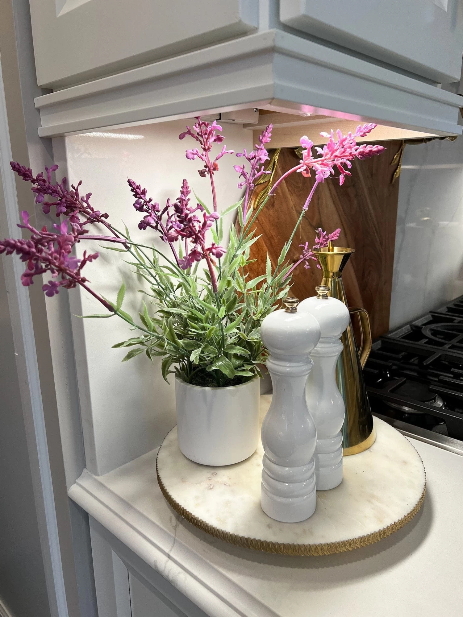 Description: This faux lavendar plant is perfect for your desk, or coffee table! it is perfect to style as-is for a low maintenance pop of color!
