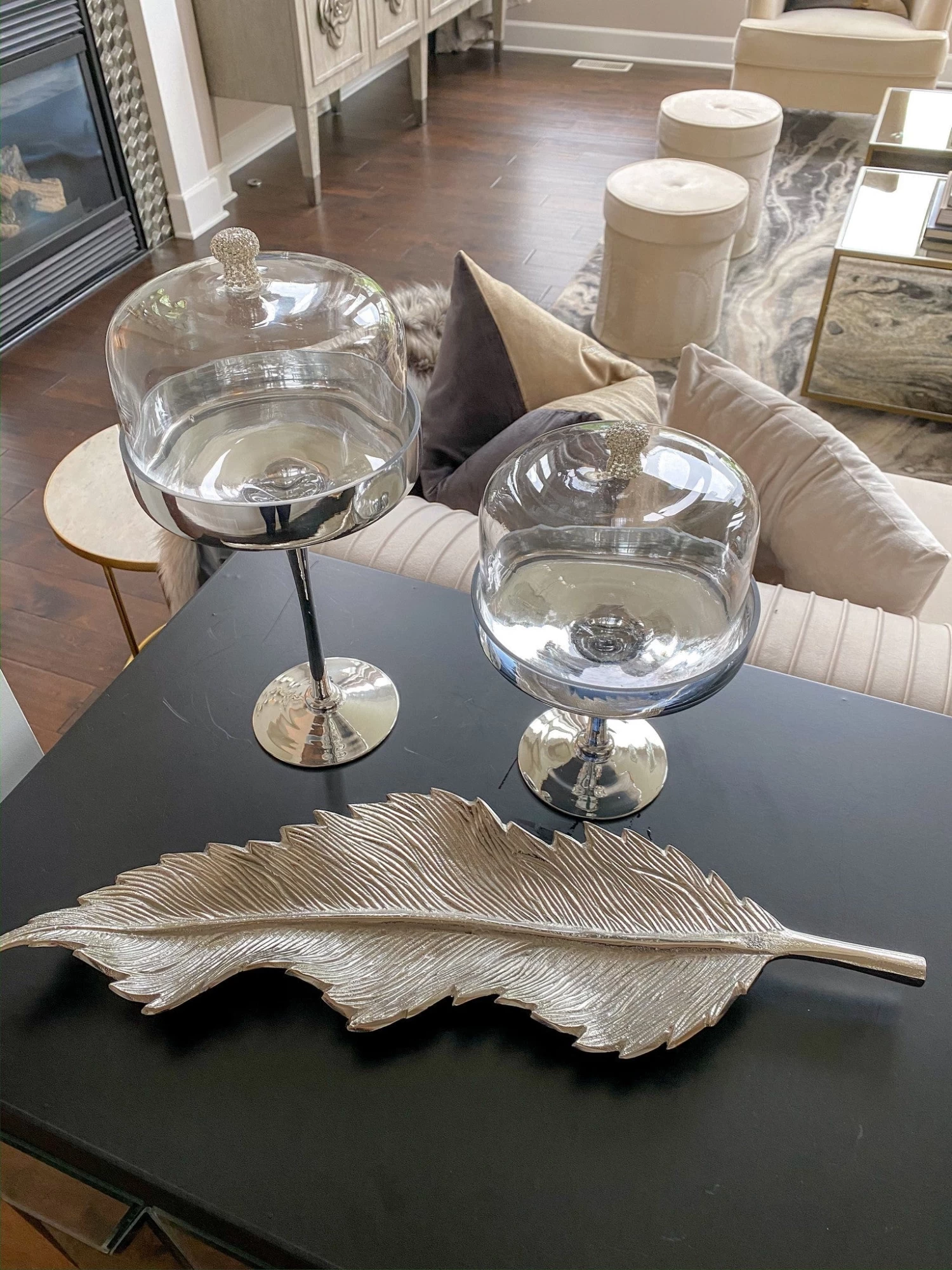 These textured leaf trays are definitely a favorite here at IMHD. These bring a little movement into your home and come in gold and silver.