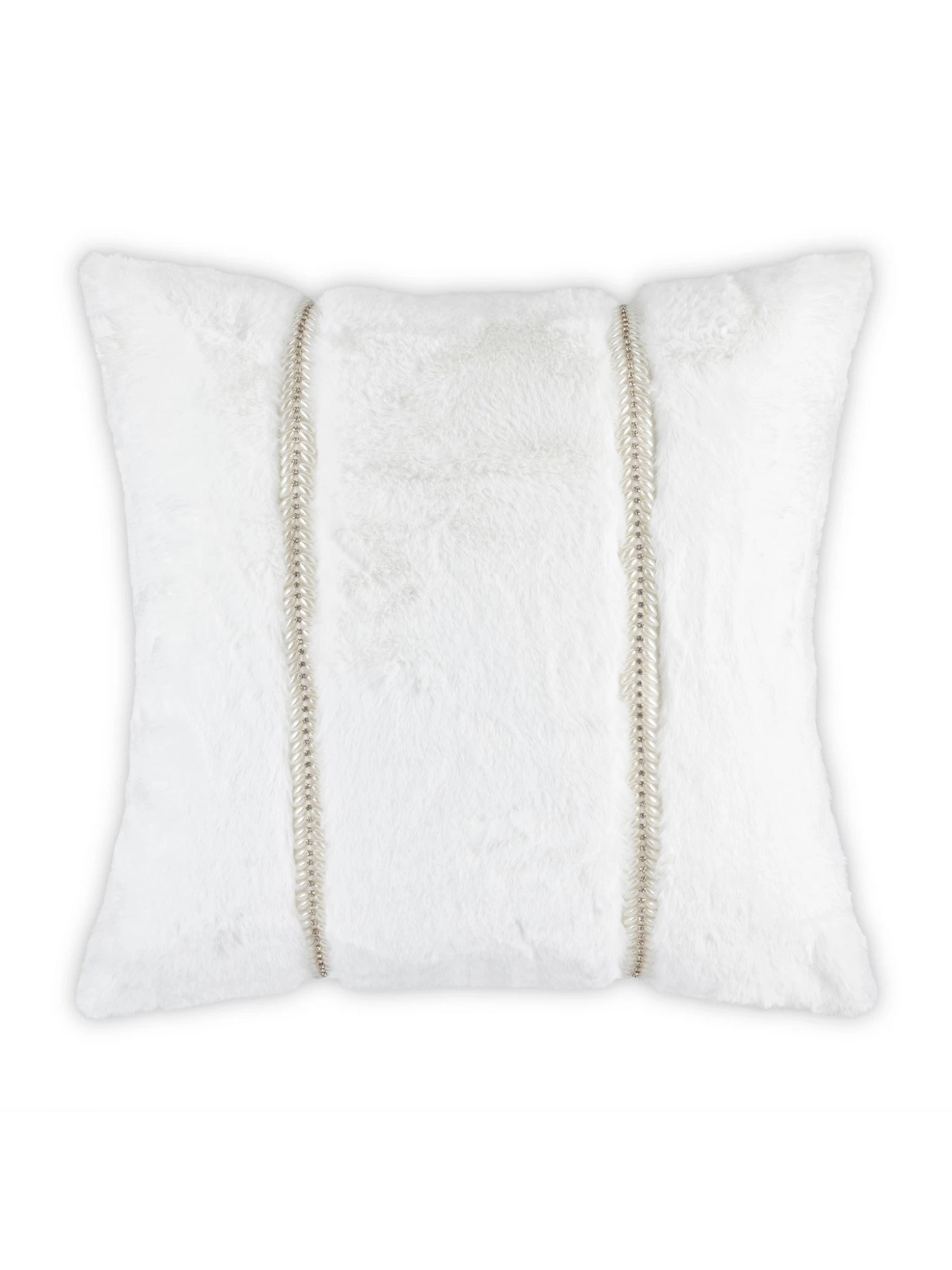 Lux is a plush faux fur pillow with two elegant rows of gold beading going through the the front of the pillow. This is a perfect addition to any home looking for a neutral soft tone.