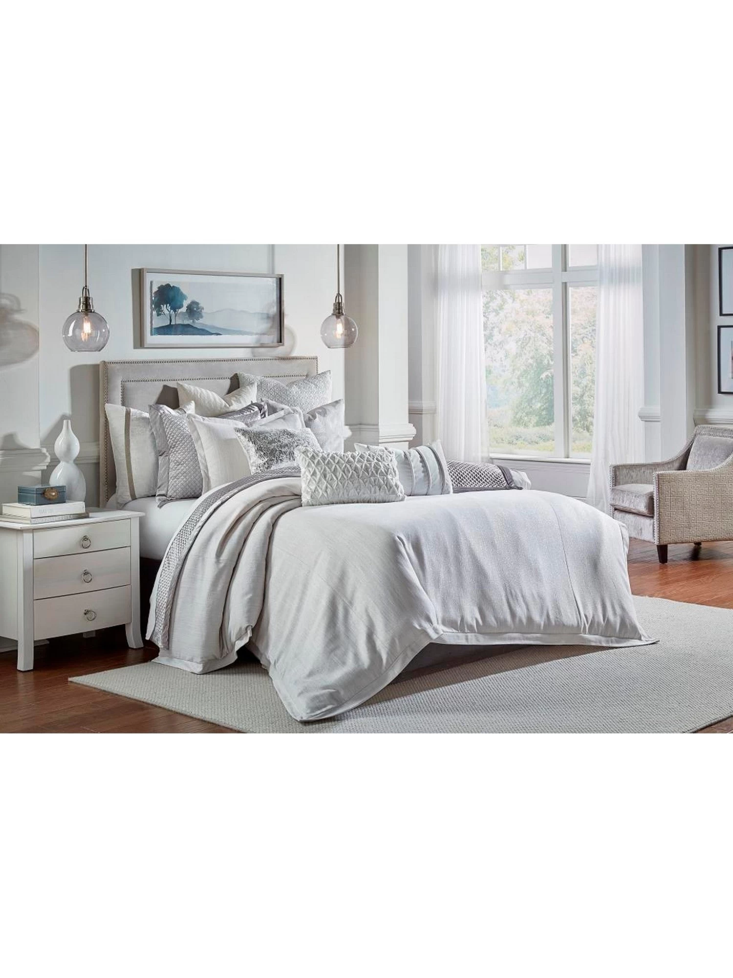 Dreams Collection- King Silver Metallic Thread Ivory Duvet cover with matching King Shams