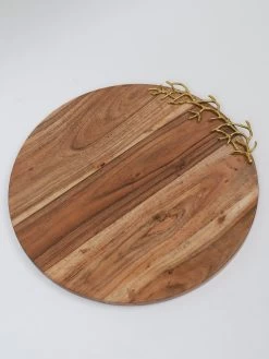 Description: These mango wood boards will add a beautiful touch to your serving display! The dark mango wood offers a modern twist to a rustic style, and when paired with intricate scroll handle, these boards become simply elegant. Available in a circle or rectangular shape!