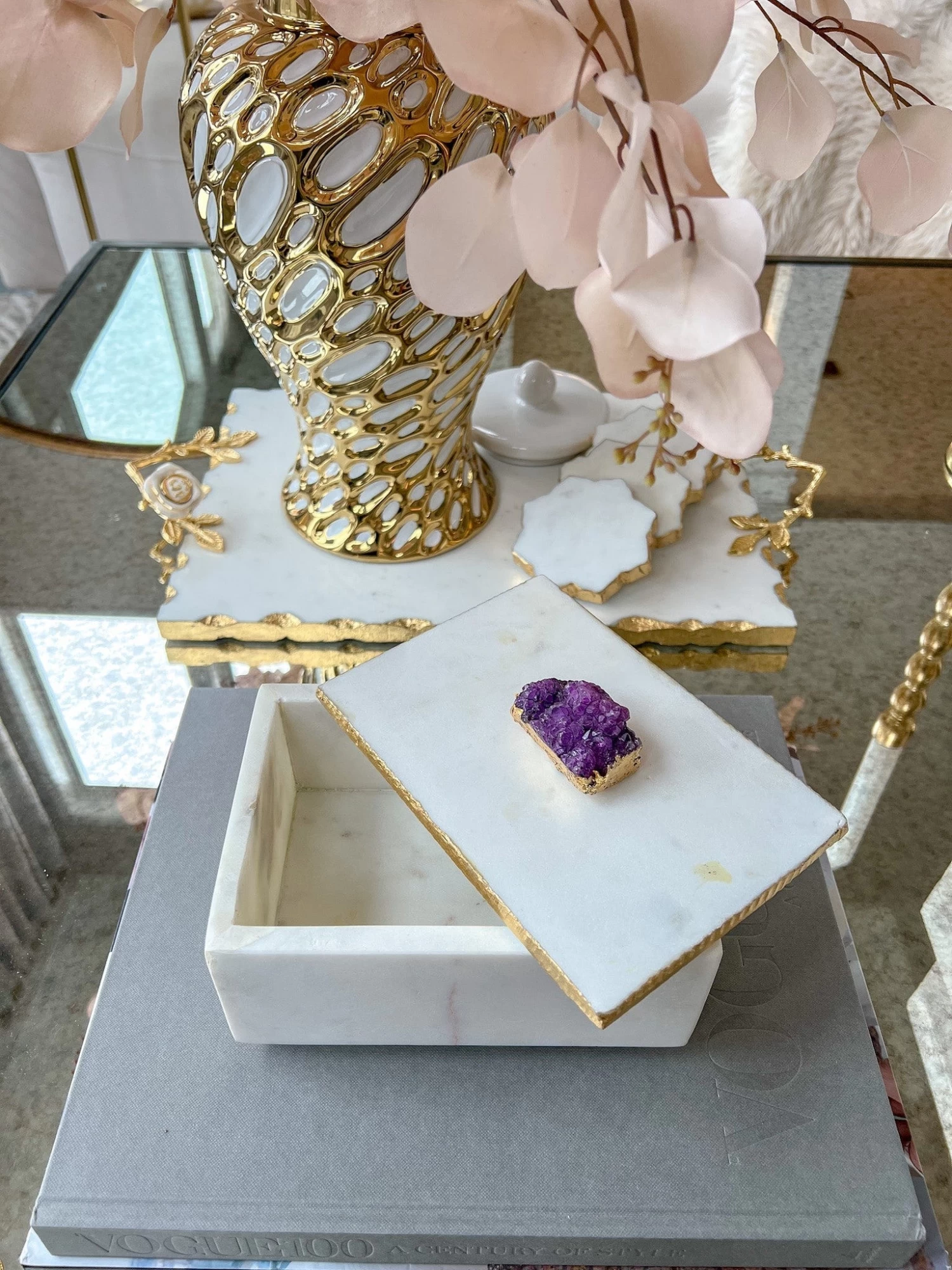 Description: This is one gorgeous white marble decorative box. There are so many uses for this one. We know you are going to LOVE this!