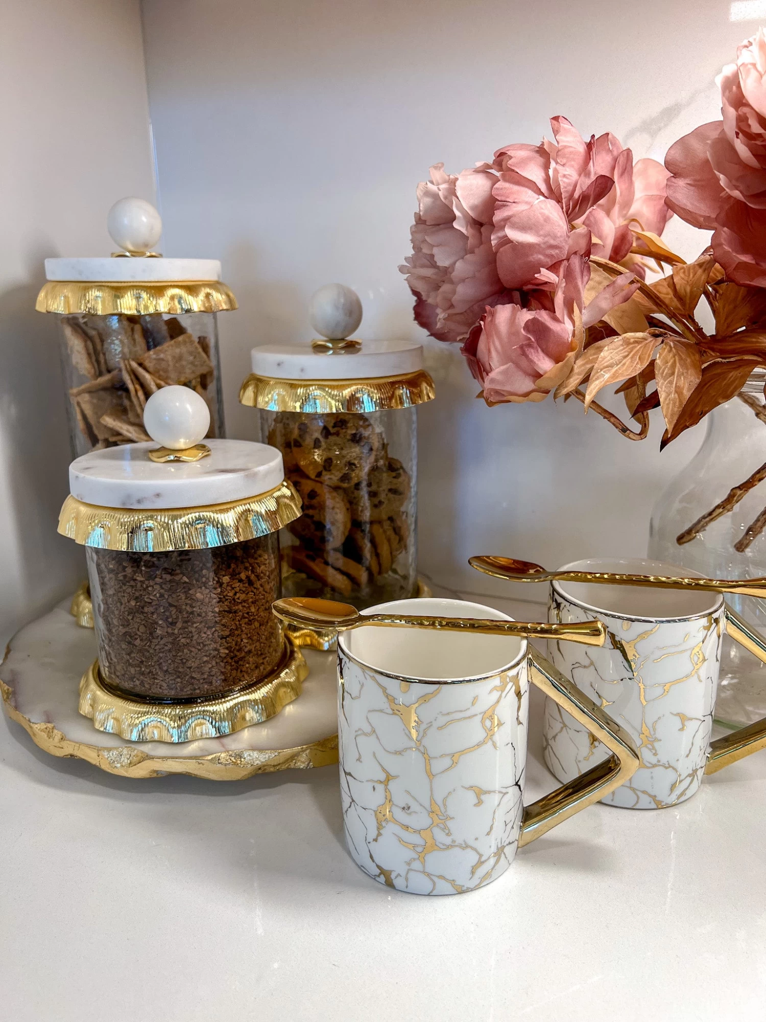 Available in three sizes, each canister is sold separately, so you can mix and match to your heart’s content. The high-quality glass construction ensures that your snacks stay fresh and visible, while the beautiful marble lids add a touch of elegance to your space. These canisters are not only functional but also a stylish addition to any kitchen decor.