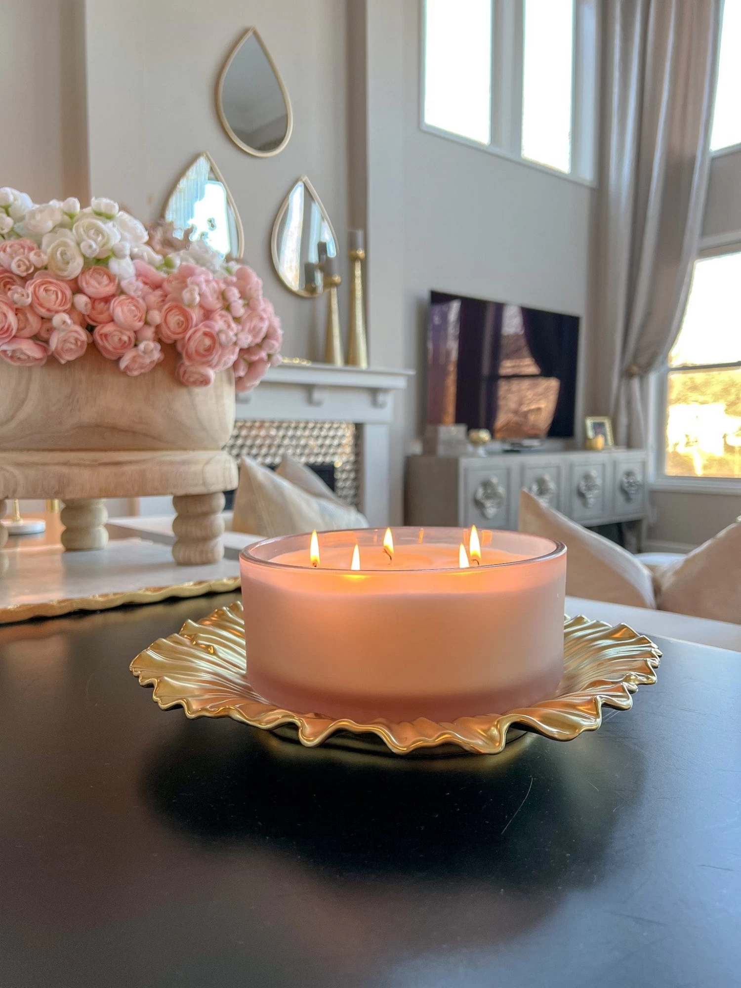 Description: This sunflower plate is beautifully done. It is very versatile and glam and will make the most gorgeous serving platter but we love using it as a candle holder!